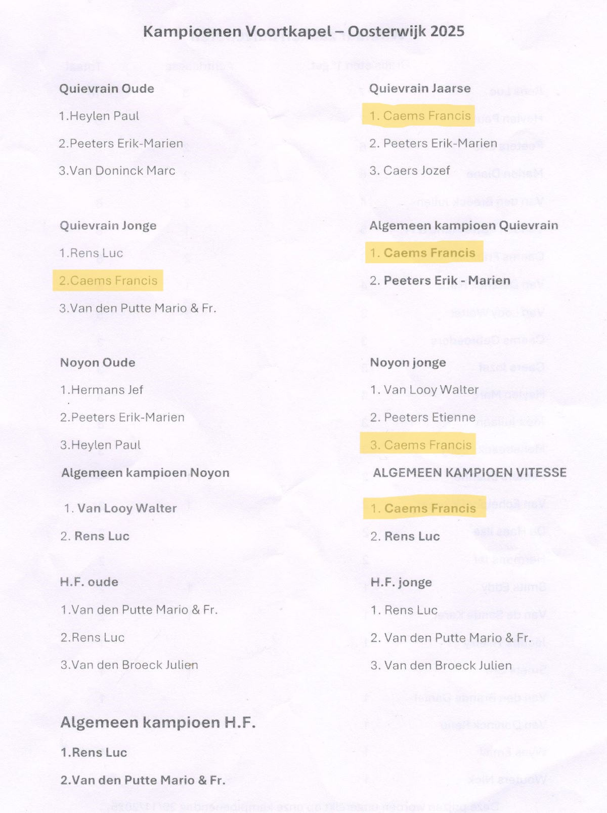 1e ALGEMEEN KAMPIOEN QUIEVRAIN 2025 Traag maar Zeker VOORTKAPEL