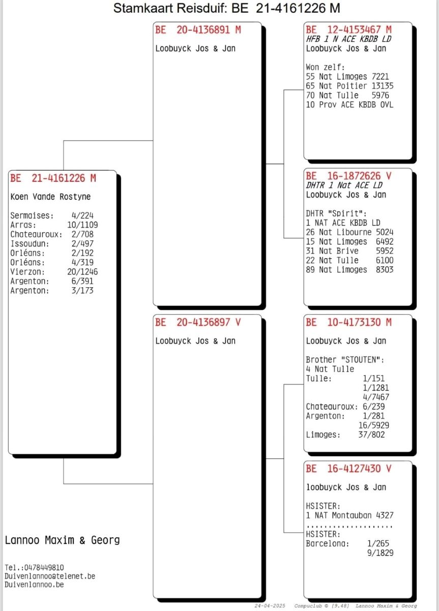 Seizoensoverzicht 2025 Kempenduiven: Duiven Lannoo (Lievegem)