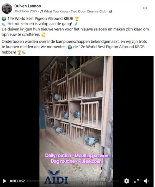 16 december 2025 Dit jaar hebben we 3 duiven opgestuurd naar Dubai OLR