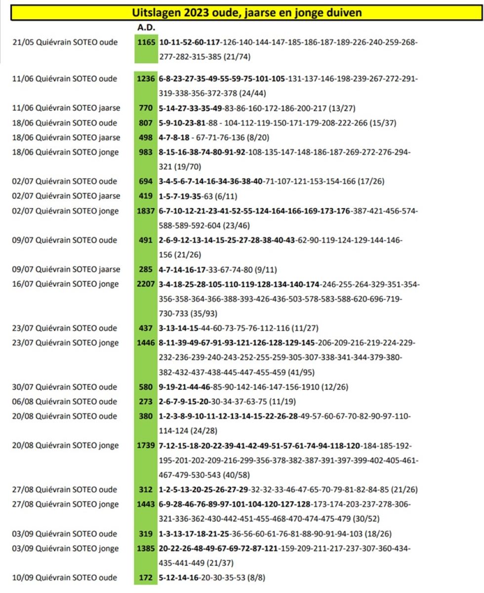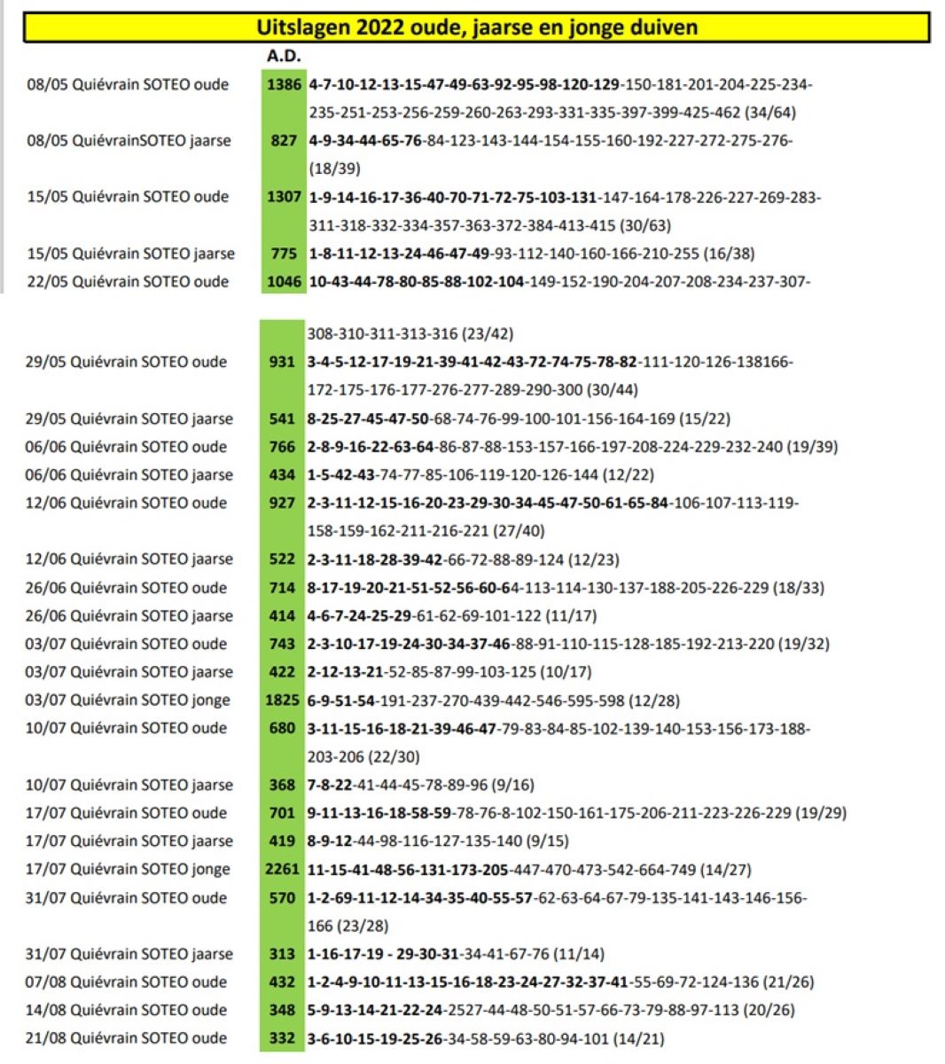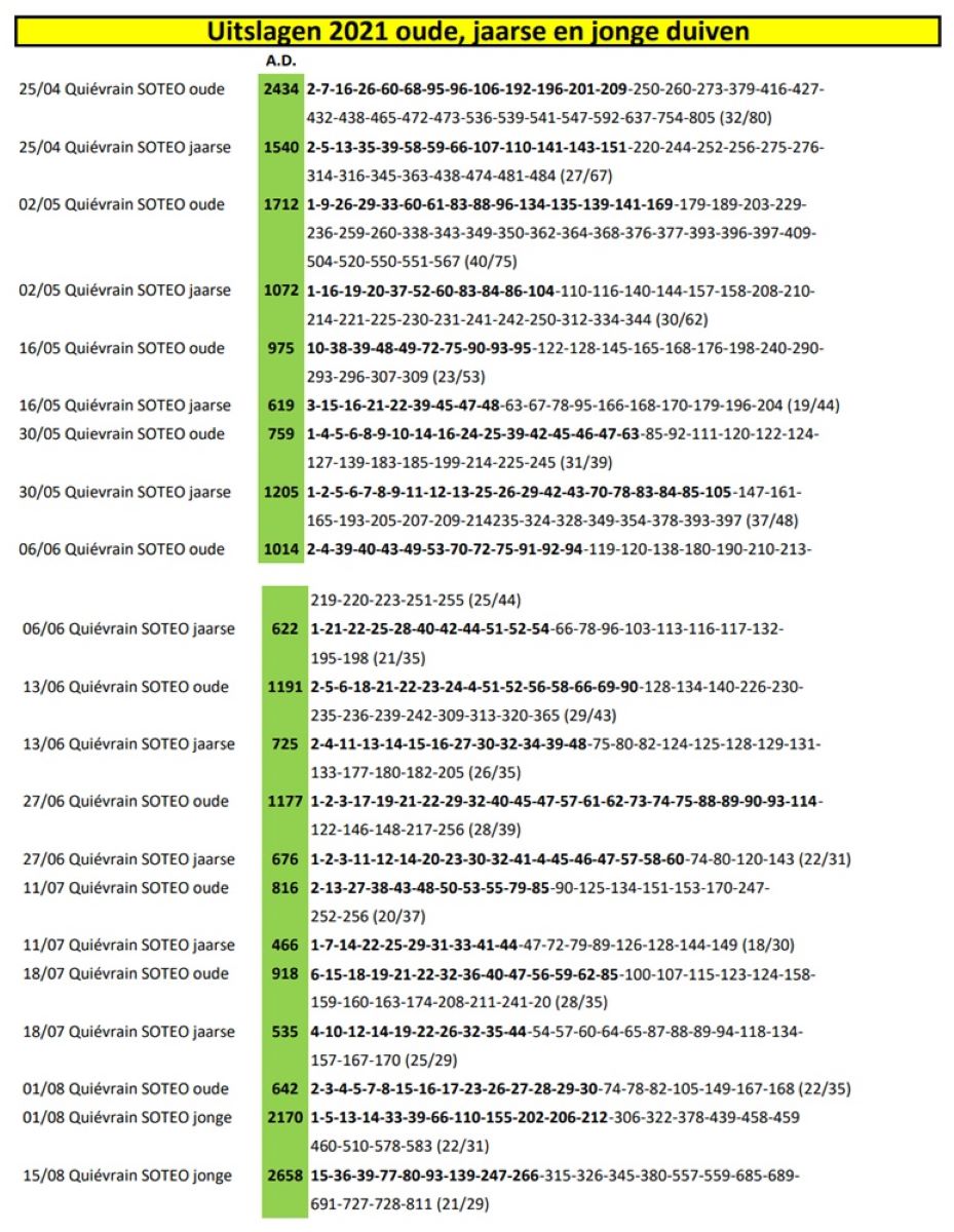 Links bij downloads kan u een overzicht met mooie resultaten van 2021 – 2022 -2023 – 2024 – 2025 met oude, jaarse en jonge duiven uit Quiévrain (afstand = 116,265 km) terugvinden.