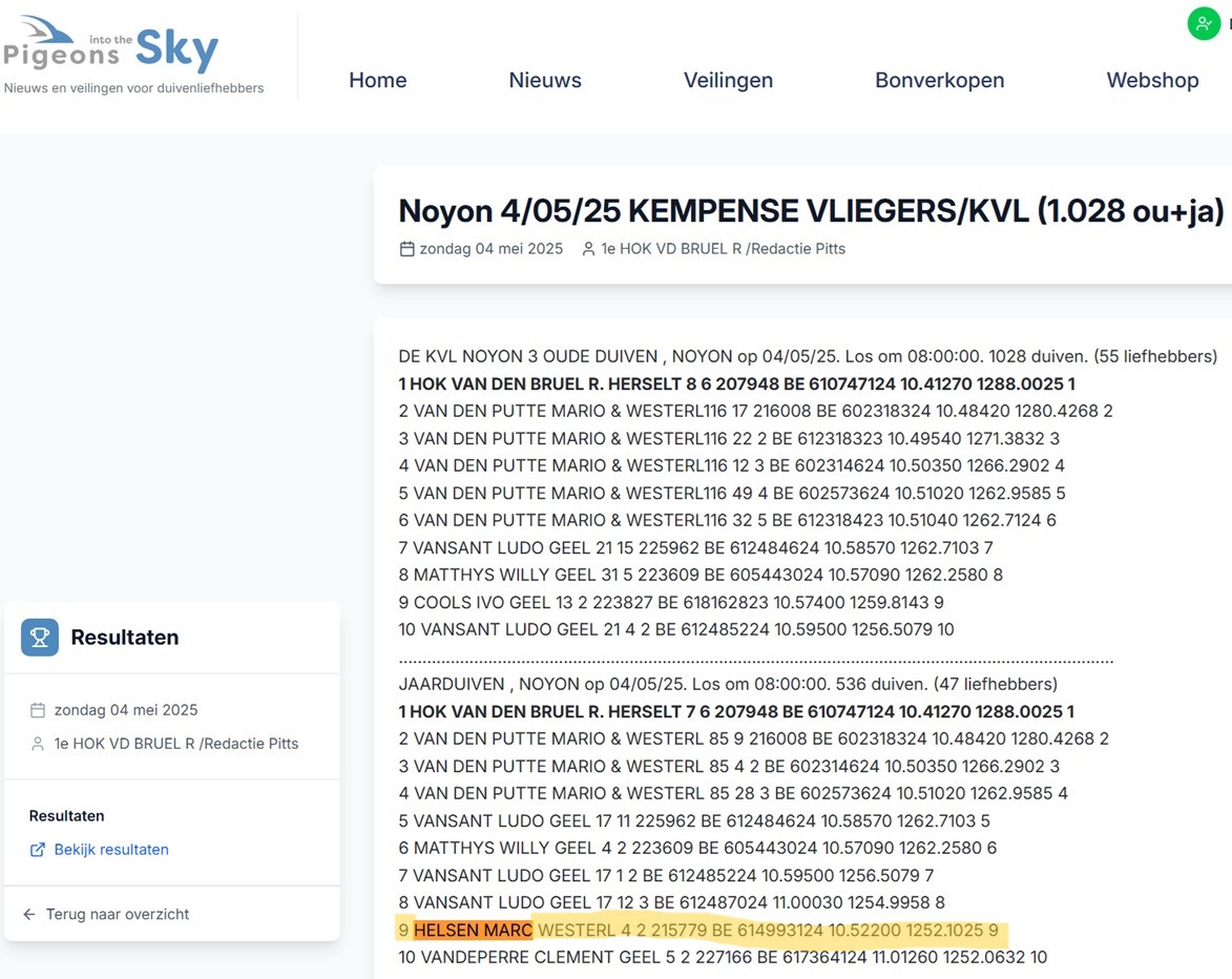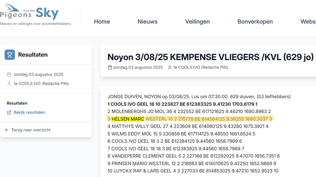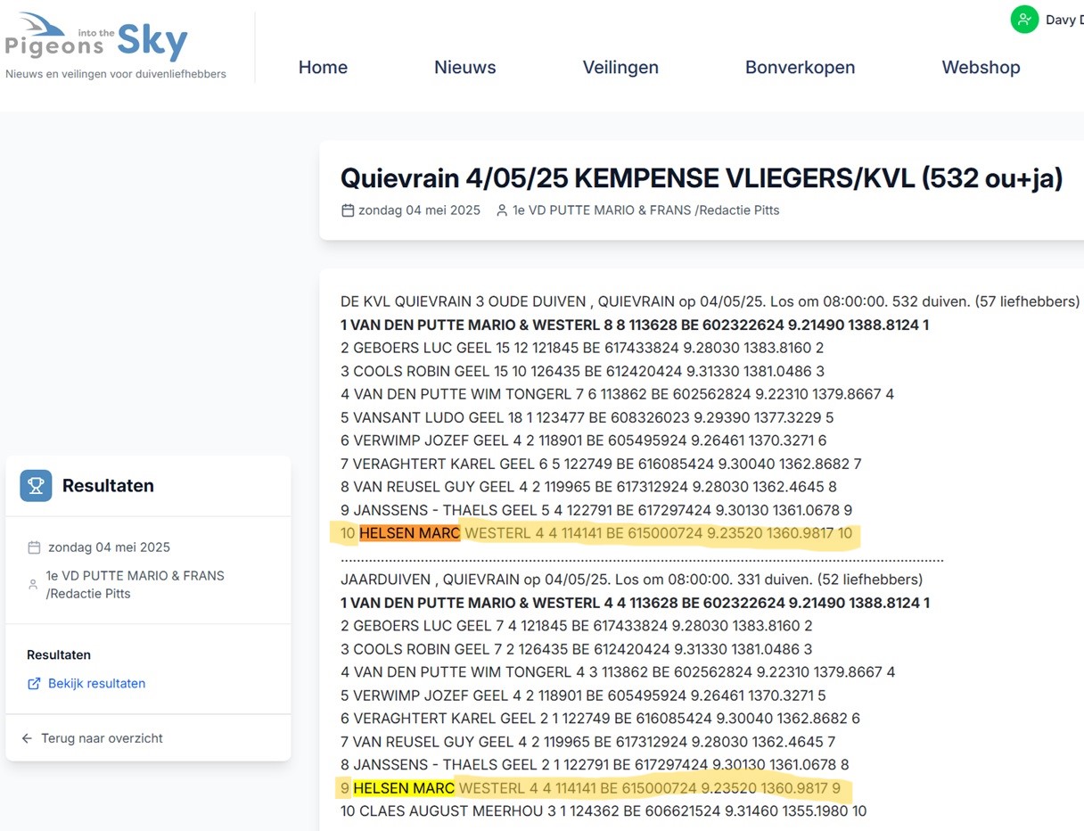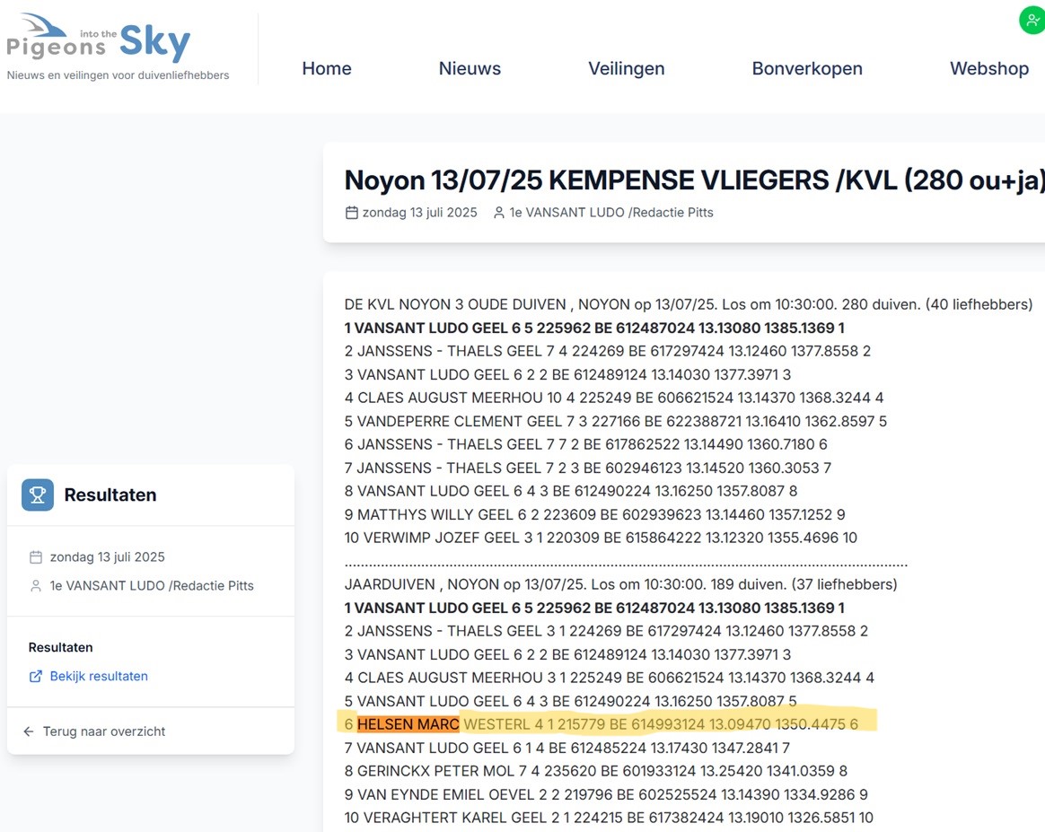 Seizoensoverzicht 2025 Kempenduiven: Marc Helsen (Westerlo)