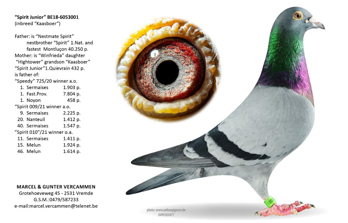 Marcel & Gunter Vercammen uit Vremde - Boechout (Antwerpen) winnen de eerste prijs uit Sermaises op 6/06/21 van 1.076 oude+jaarse duiven in het samenspel Union Antwerpen Zone West.