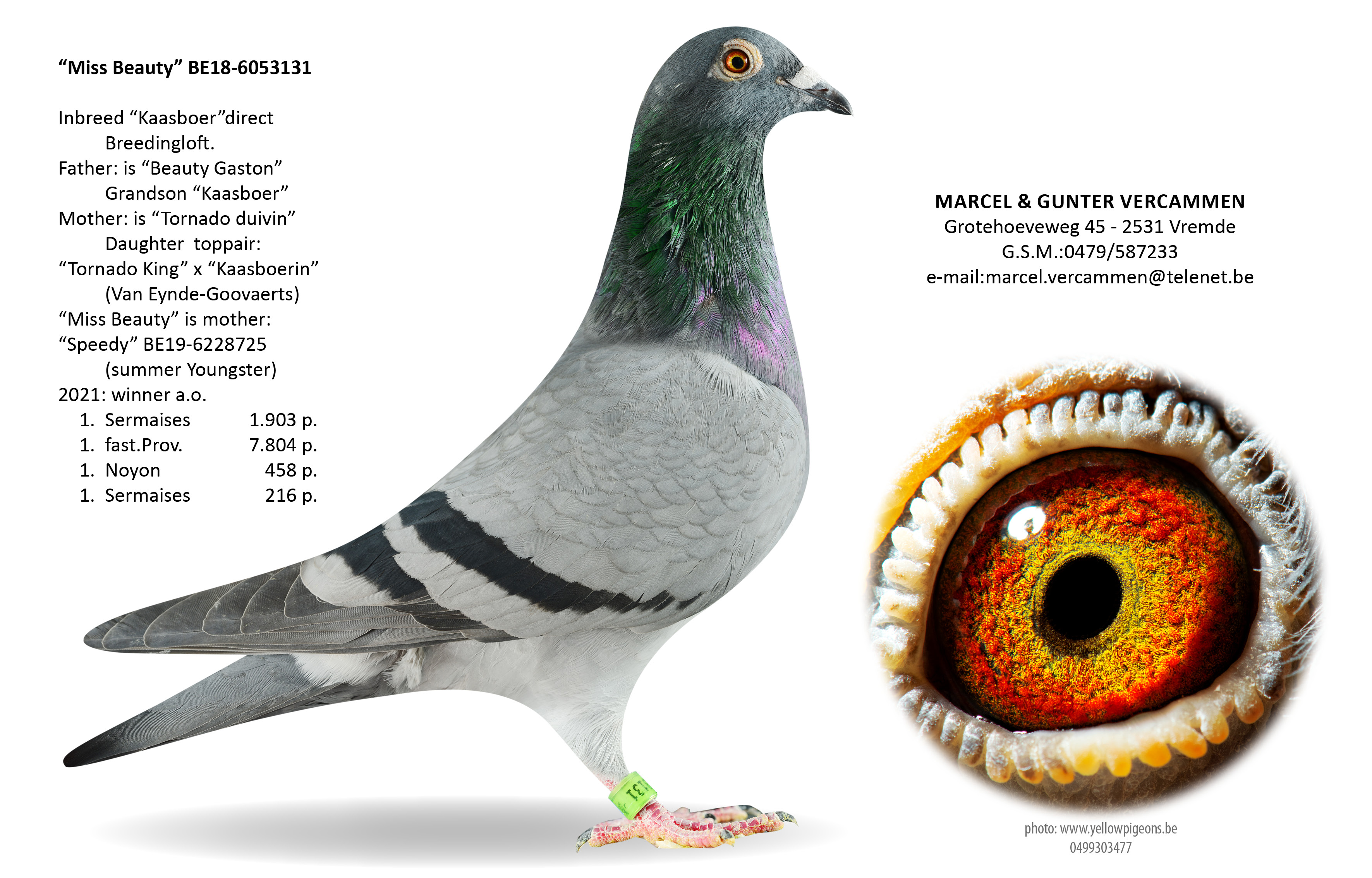 Marcel & Gunter Vercammen uit Vremde - Boechout (Antwerpen) winnen de eerste prijs uit Sermaises op 6/06/21 van 216 oude+jaarse duiven bij de Eendracht Schilde.
