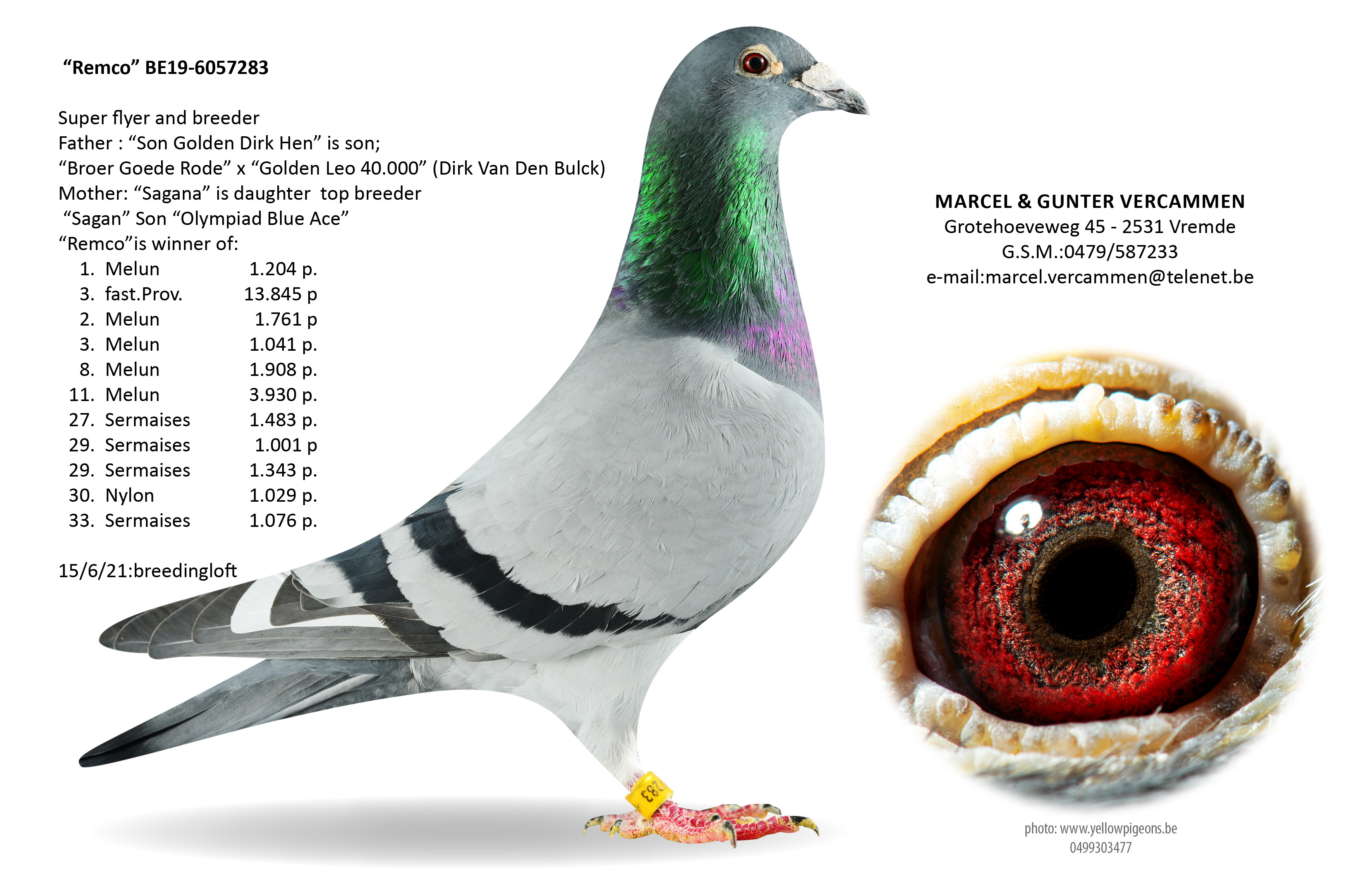 Marcel & Gunter Vercammen uit Vremde - Boechout (Antwerpen) winnen de eerste prijs uit Sermaises op 6/06/21 van 1.903 oude+jaarse duiven in het samenspel Union Antwerpen.