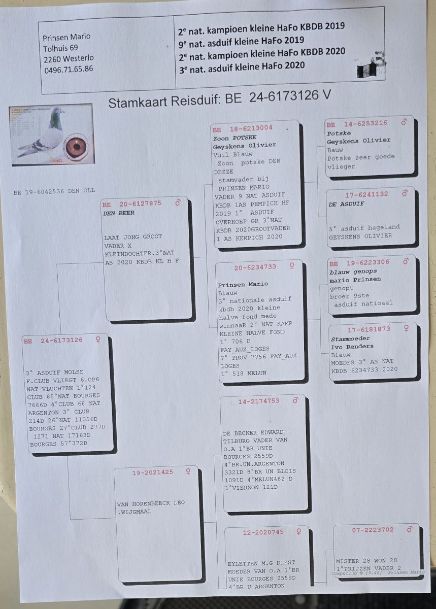 Door de behaalde topnoteringen op nationaal niveau van de laatste jaren (2e nat. Kampioen Jonge Kleine Hafo in 2019 en 2020) kunnen we wel stellen dat deze liefhebber een topper in de Belgische duivensport is.