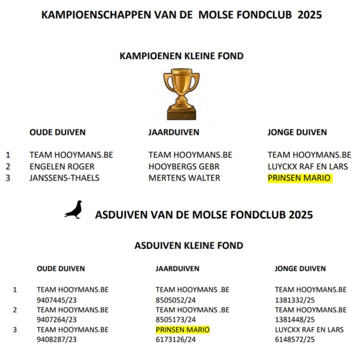 4e KAMPIOEN JAARSE DUIVEN KLEINE FOND 2025 MOLSE FONDCLUB