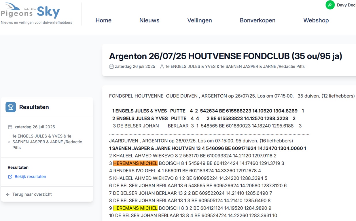 Seizoensoverzicht 2025 Kempenduiven: Michel Heremans (Booischot)