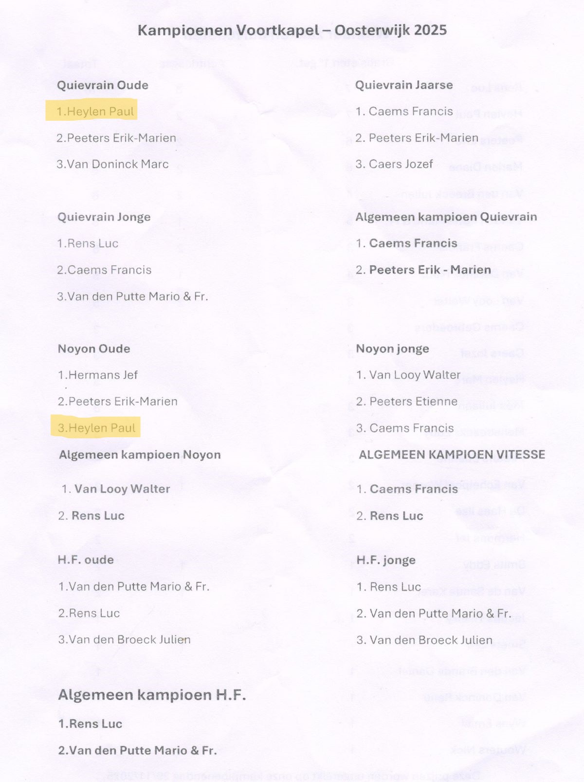 1e KAMPIOEN OUDE DUIVEN QUIEVRAIN 2025 Traag maar Zeker VOORTKAPEL