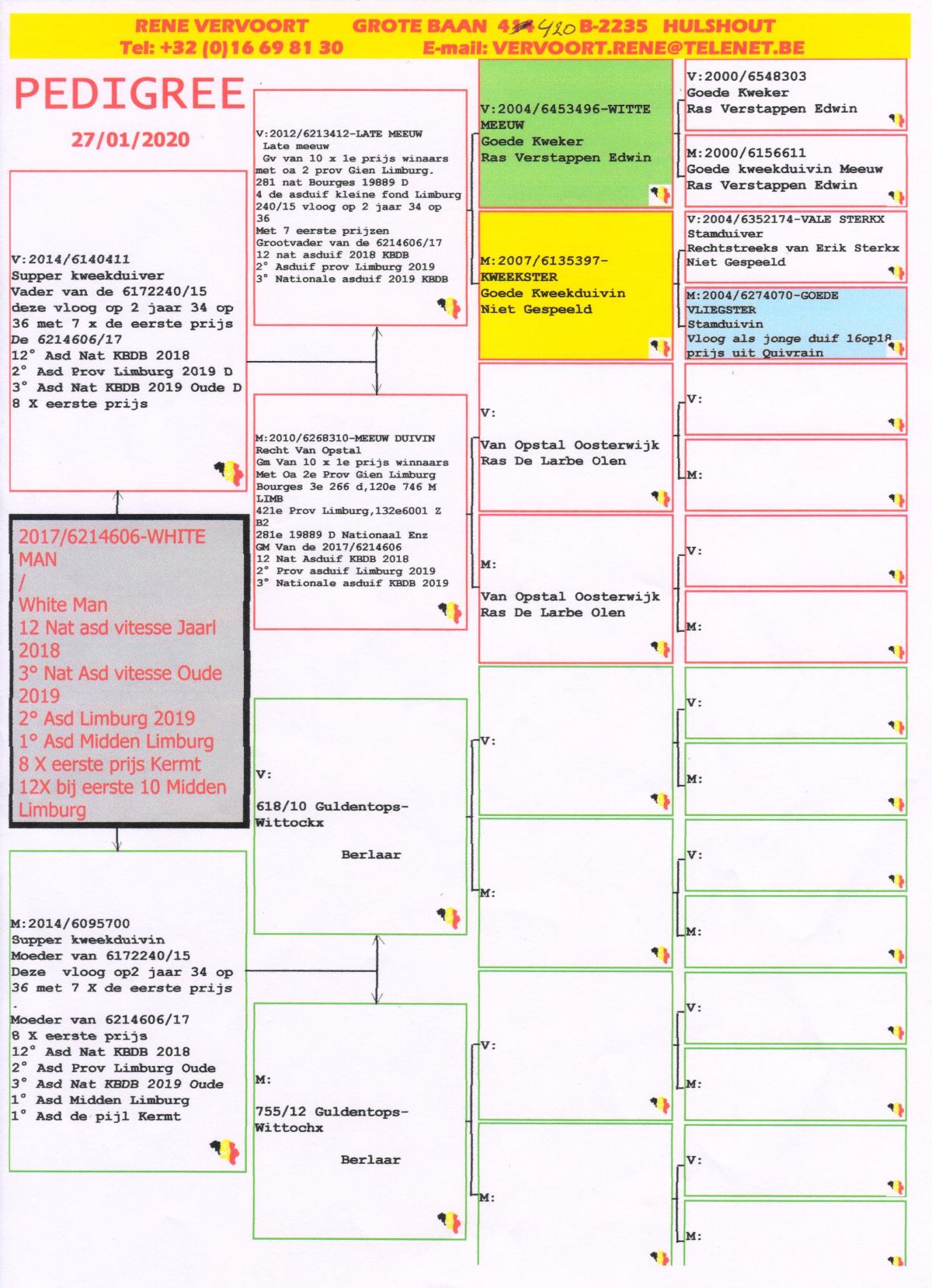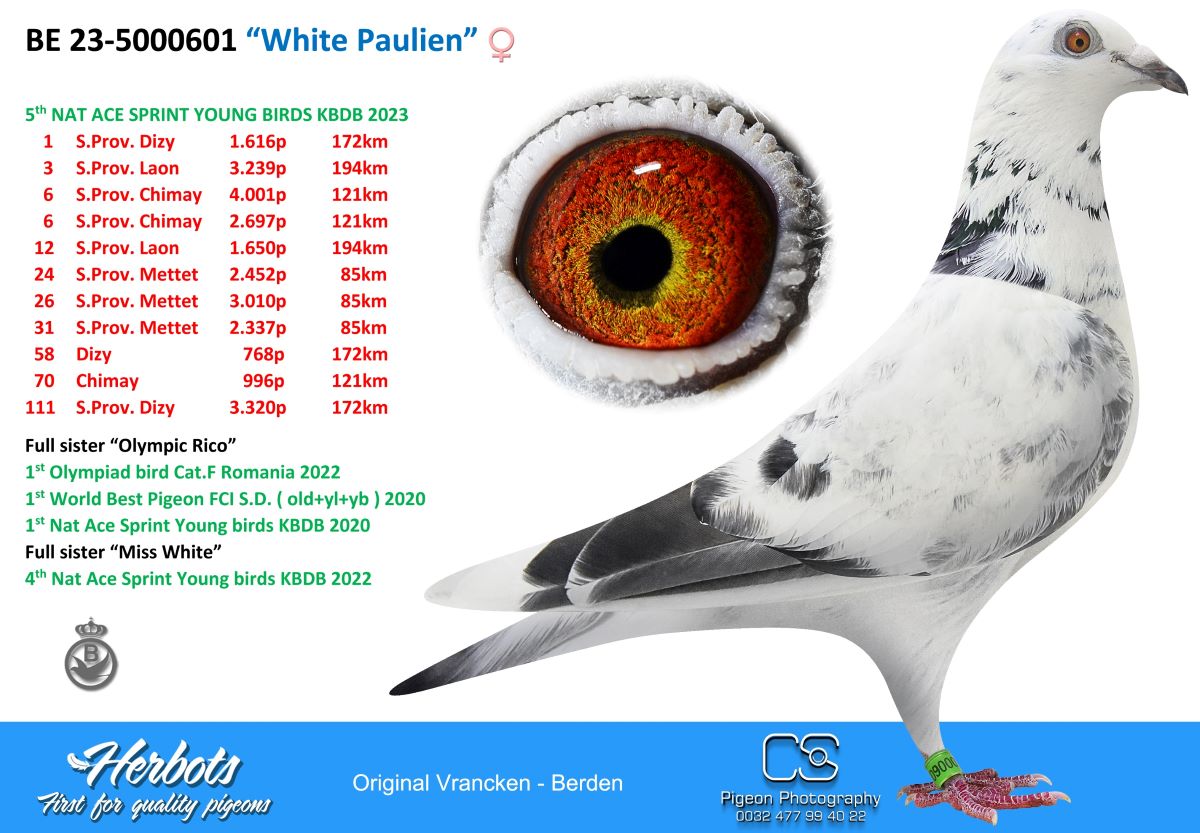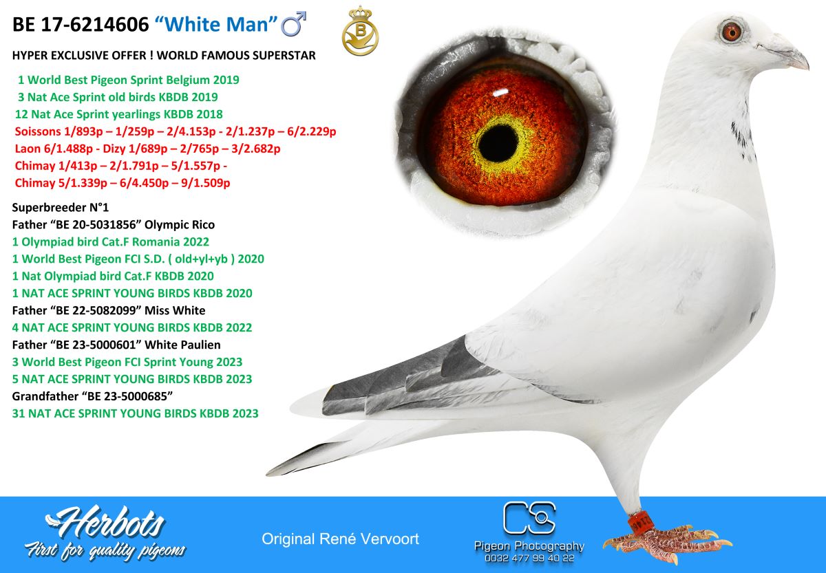 Vrancken-Berden Kuringen (Hasselt) heeft enkele super goede duiven waaronder 'White Man' afkomstig van Rene die daar en elders hun kweek- en prestatie-waarde bezwezen hebben.