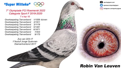 - eerste prijs uit Quievrain op 6/06/22 van 275 jonge duiven bij duivenbond De Reisduif DUFFEL-Mijlstraat.
