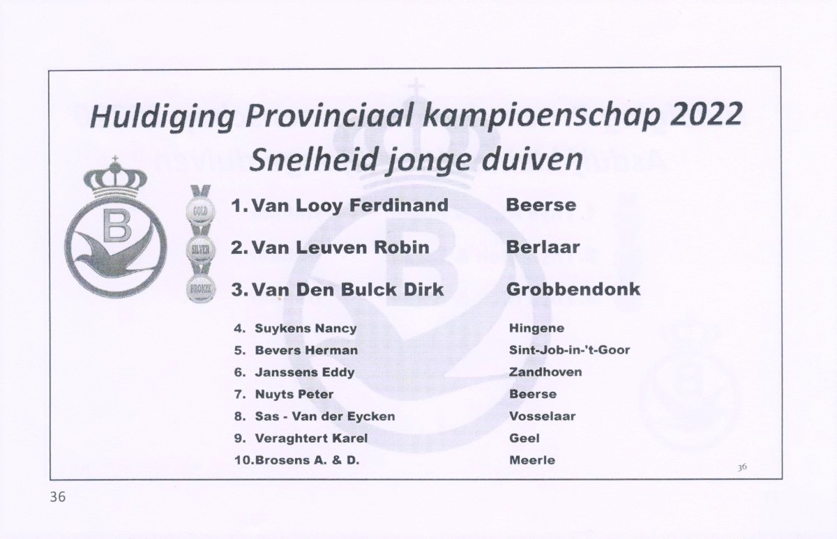 - 5e PROVINCIAAL KAMPIOEN Jonge duiven KLEINE SNELHEID 2024 KBDB PE ANTWERPEN