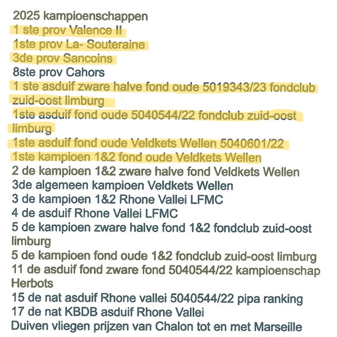 8e PROV Cahors 2025 (16/06/2025) -PE Limburg (Oude) Totaal aantal duiven: 523 & 3e Cahors 16/06/25 Veldkets WELLEN (61 ou)