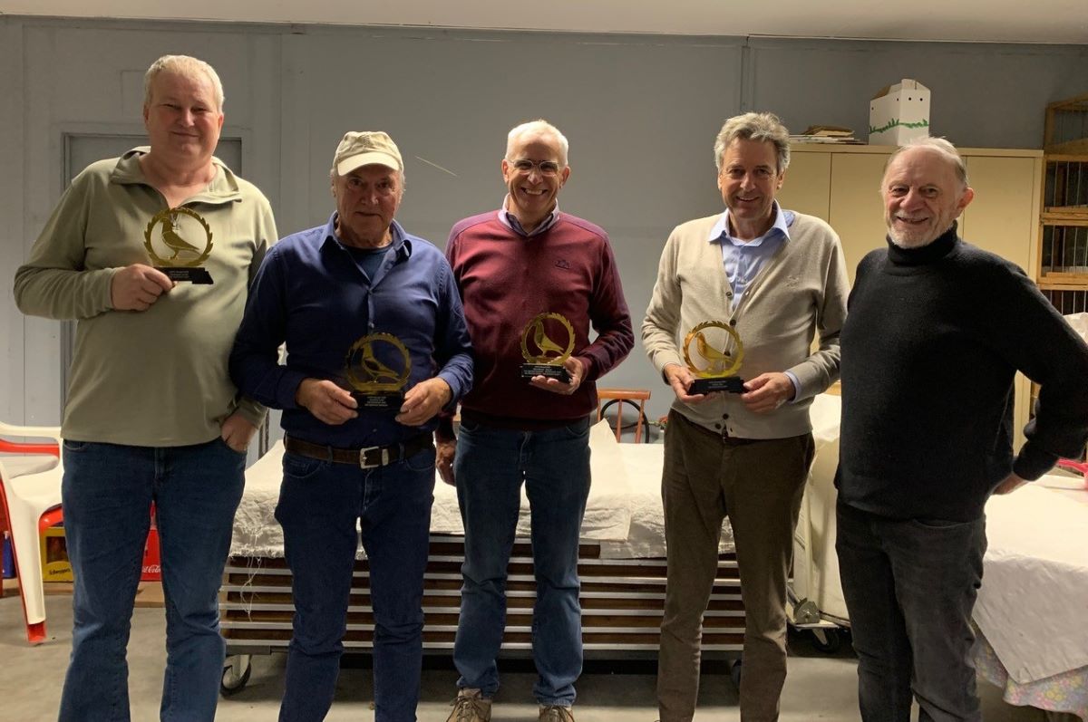We herkennen v.l.n.r. Jonas Verstappen, Louis Janssens, Willy Anthonis, Bart Obbels en voorzitter Jos Cools.