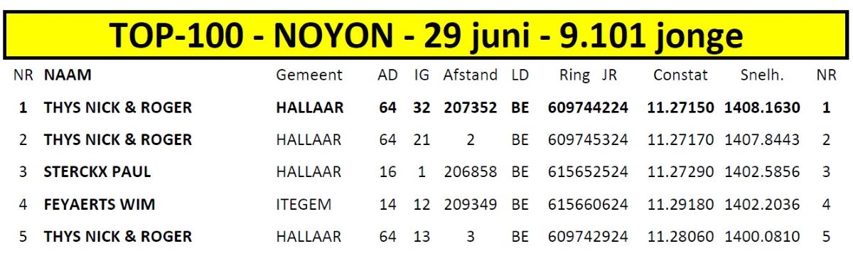 Klik hier voor Overzicht Top-100 jongen van Noyon 30/06/2024