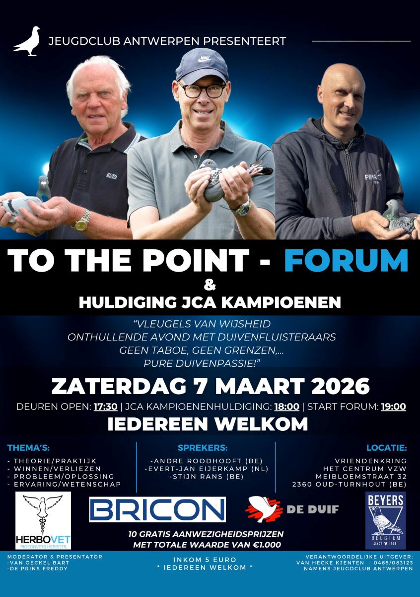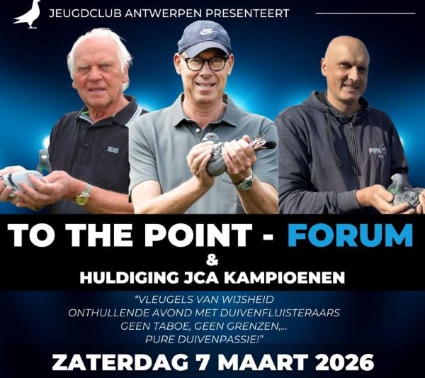 Na deze huldiging volgt To The Point – Forum, een open en eerlijke avond met drie absolute toppers uit de duivensport: