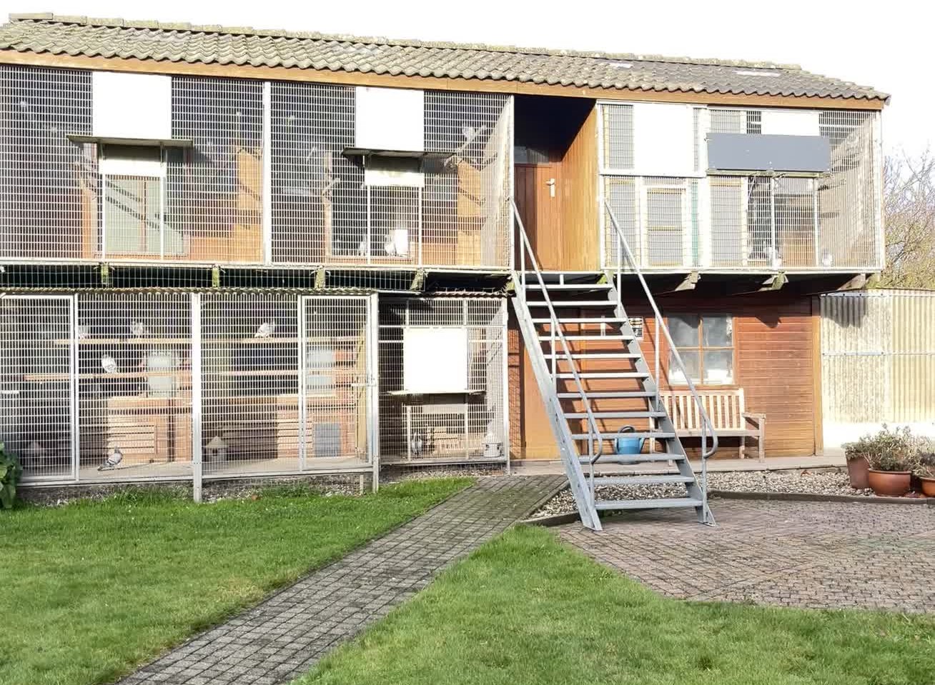 In Schepdaal staan prachtige tuinhokken voorzien van mestbanden bij de jonge duiven en op het vlieghok van de duivinnen op eerste verdieping. Alle hokken zijn voorzien van houten roosters en volières waarbij enkel de voorkant open is, het binnen hok is volledig dicht en dus tochtvrij.