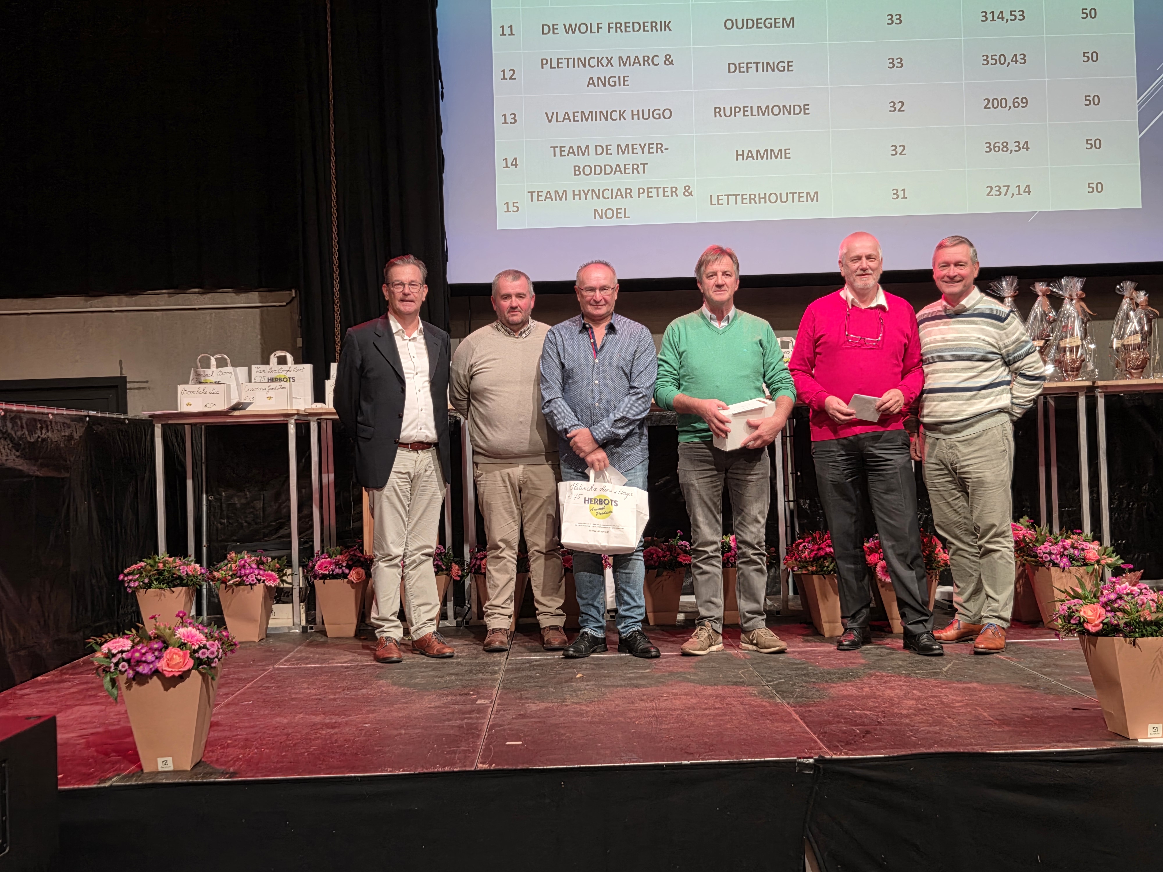 Vandaag delen we meer dan 11.000 euro cash en 4.500 euro aan naturaprijzen uit — mede dankzij onze gulle sponsors. Dank aan hen allen — zichtbaar op onze website, ons briefpapier en via de mediapartners (alfabetisch gezet) De Duif, Herbots, Pipa, Pitts. Zij geven onze sport structuur, zichtbaarheid en kracht.