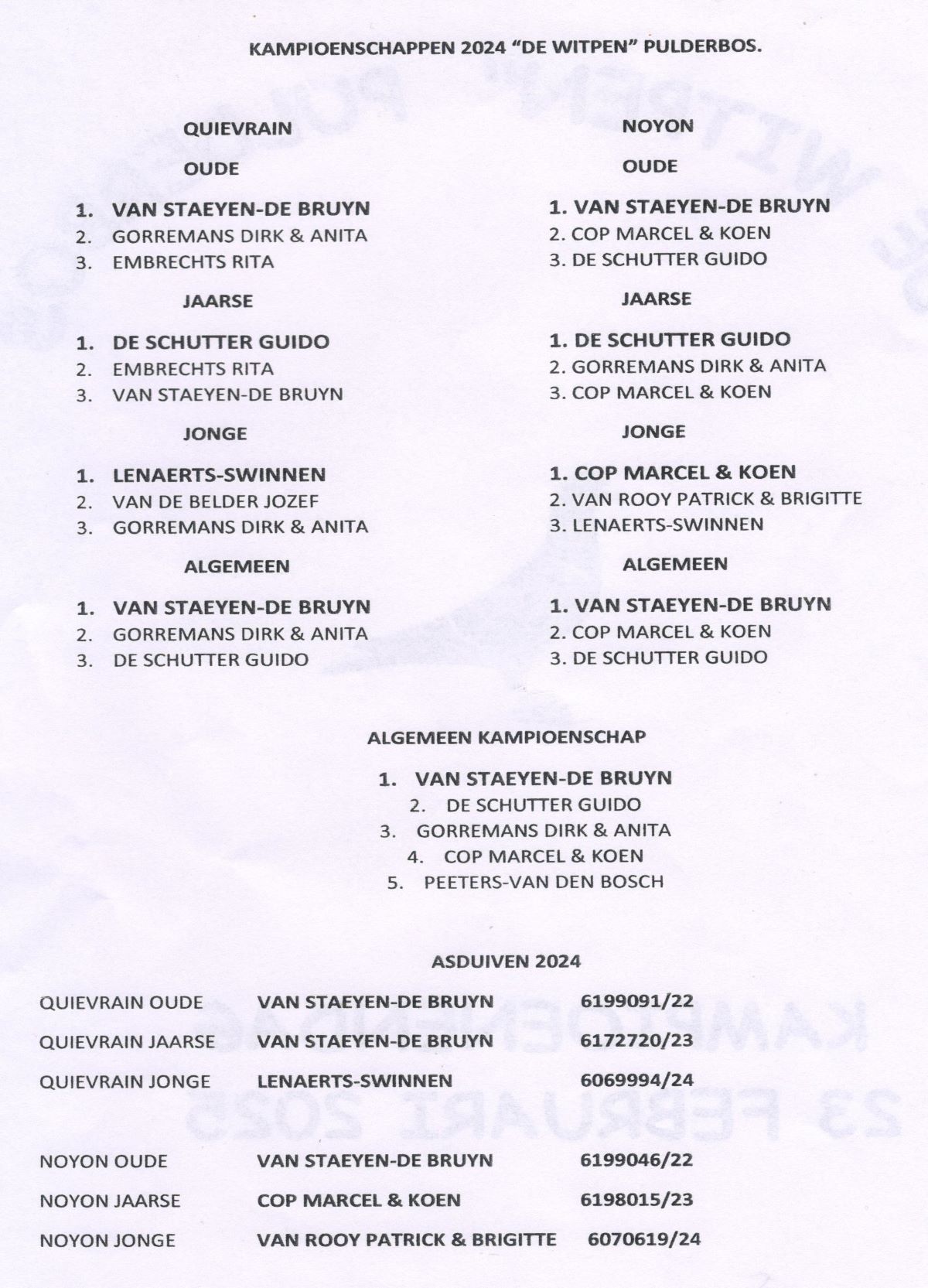 ALGEMEEN KAMPIOEN NOYON+QUIEVRAIN van Staeyen-De Bruyn Pulderbos