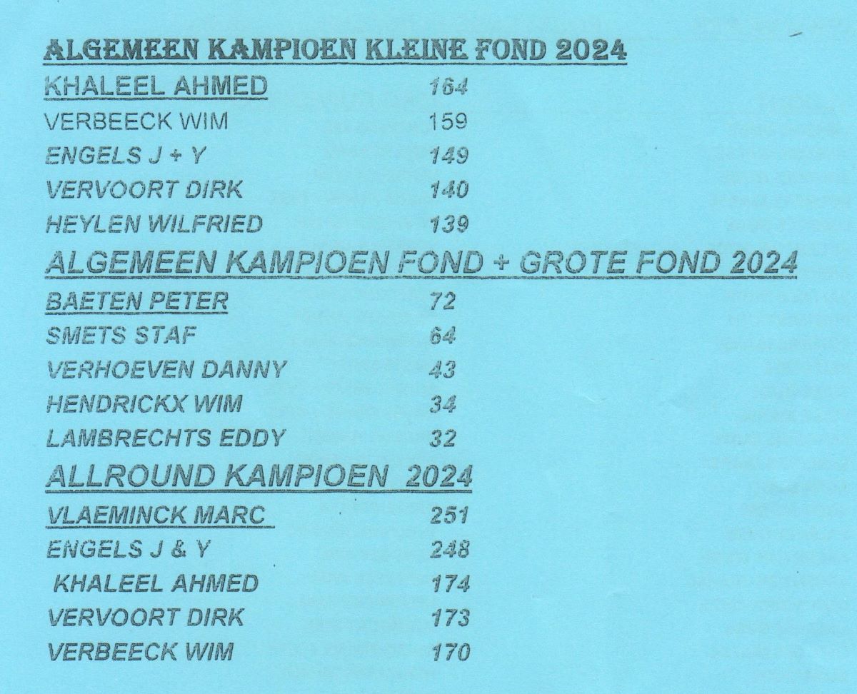 HOUTVENSE FONDCLUB ALGEMENE KAMPIOENENVIERING MET FEESTMAAL OP ZATERDAG 25 JANUARI 2025. ALG KAMP Ahmed Khaleel, Peter Baeten, Marc Vlaeminck. Enkele sfeerbeelden en foto's van de kampioenen ...