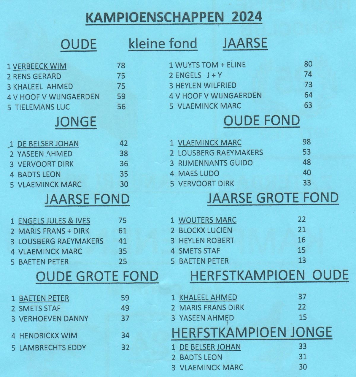 Klik hier voor Overzicht HOUTVENSE FONDCLUB Kampioenschappen 2024