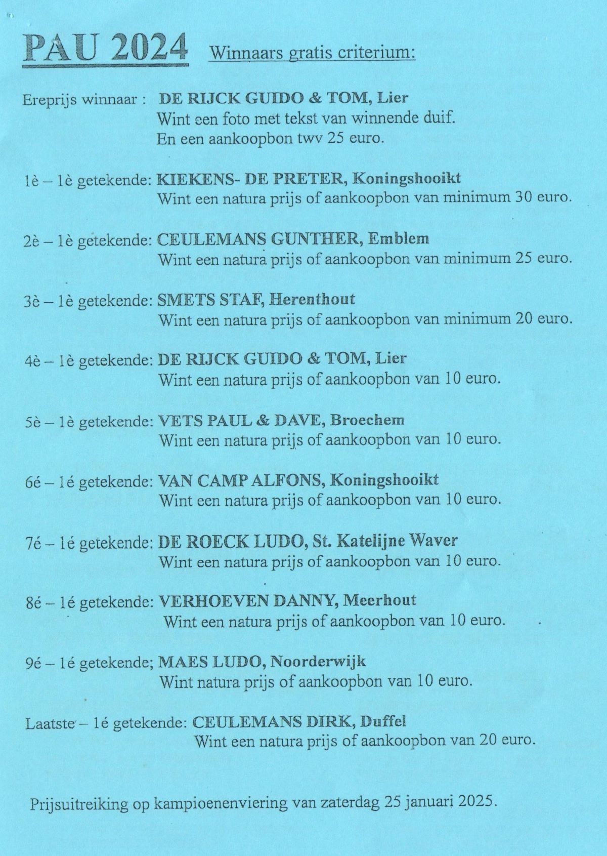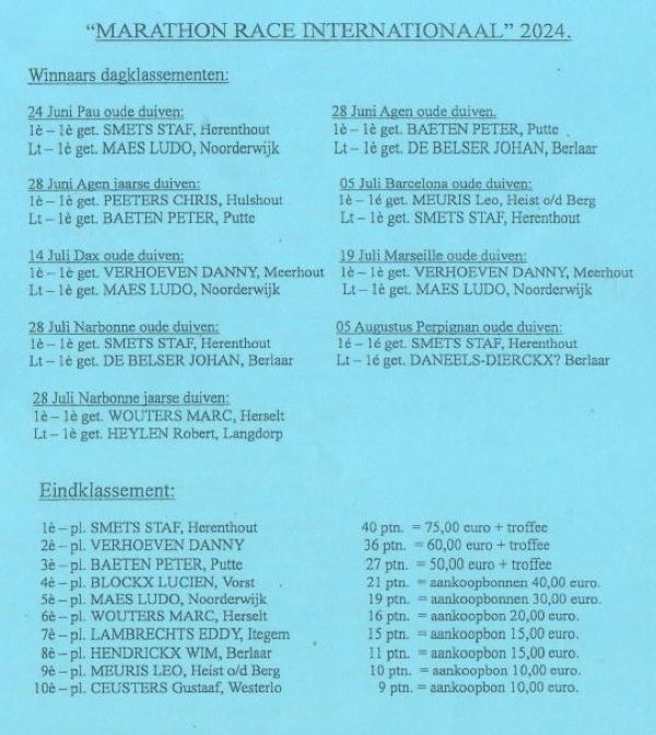 Asduiven & Nationale & Zonale & Provinciale duiven