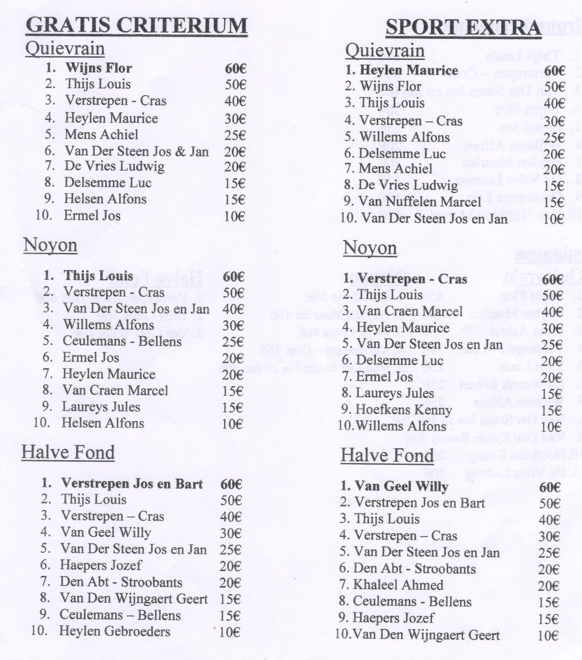 - Kampioen Jonge duiven Noyon: Verstrepen-Cras (Wiekevorst)