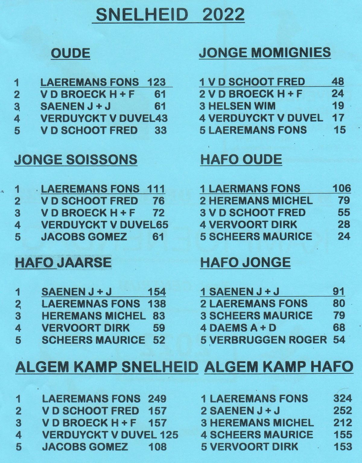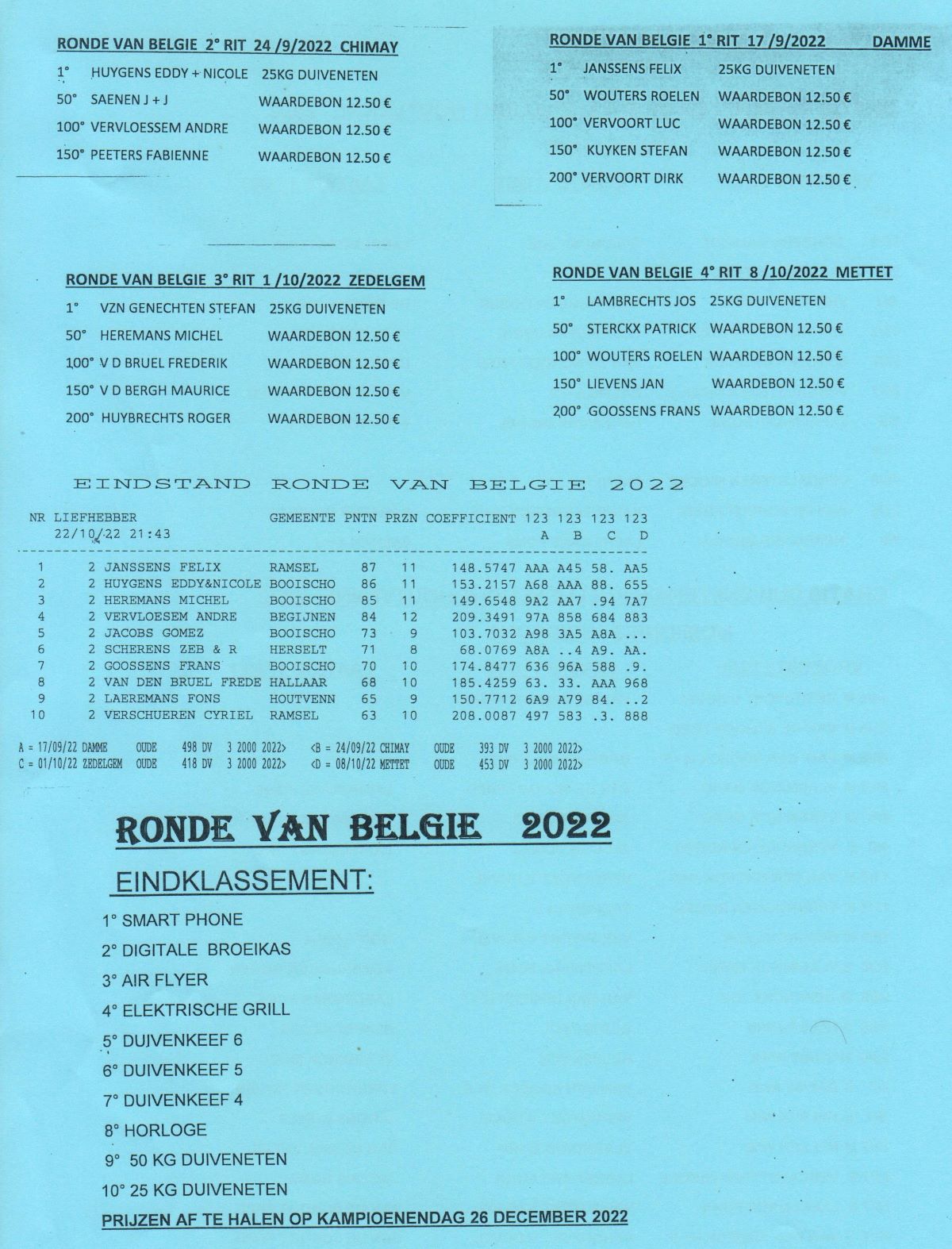 - Nevenklassement 2022 de Snelle Vlucht Houtvenne