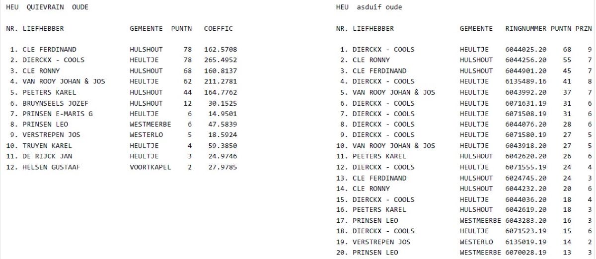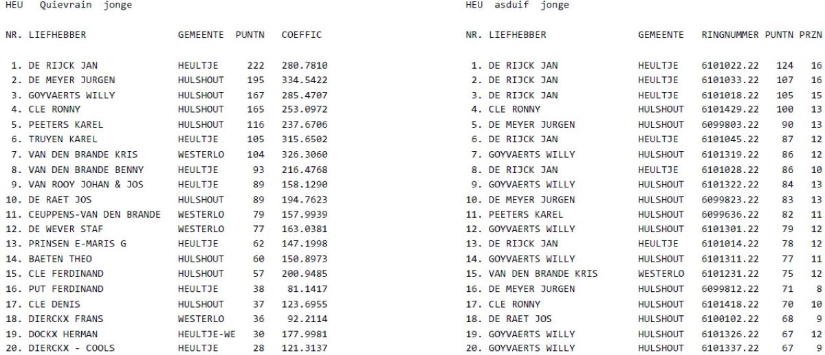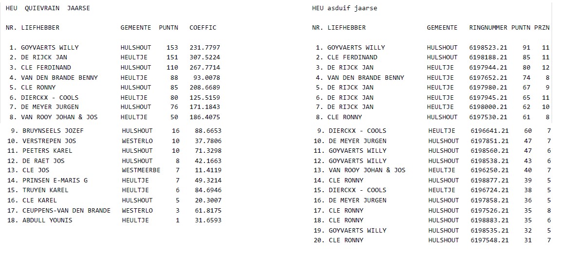 Kampioenschappen 2022 de Vredesduif Heultje