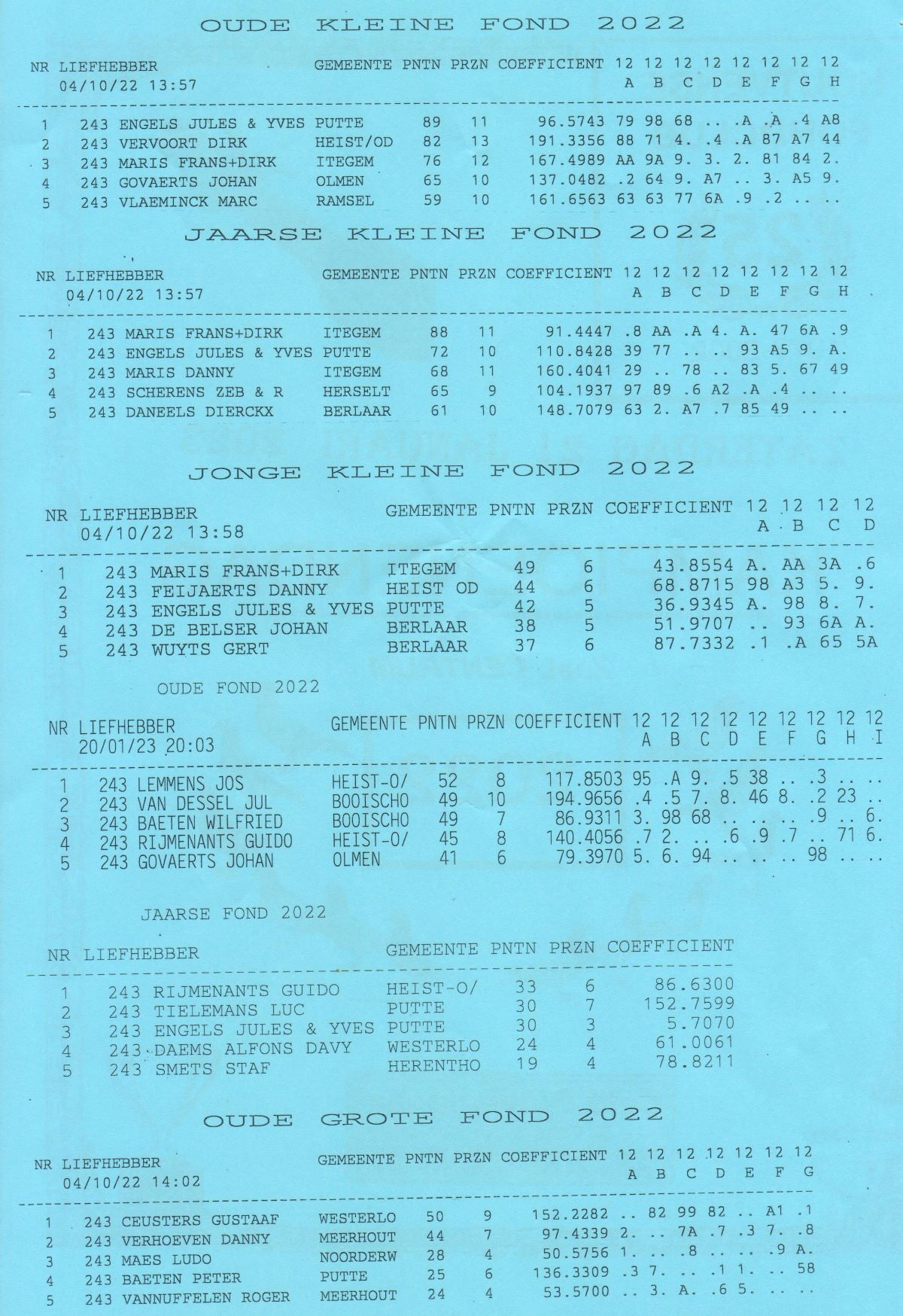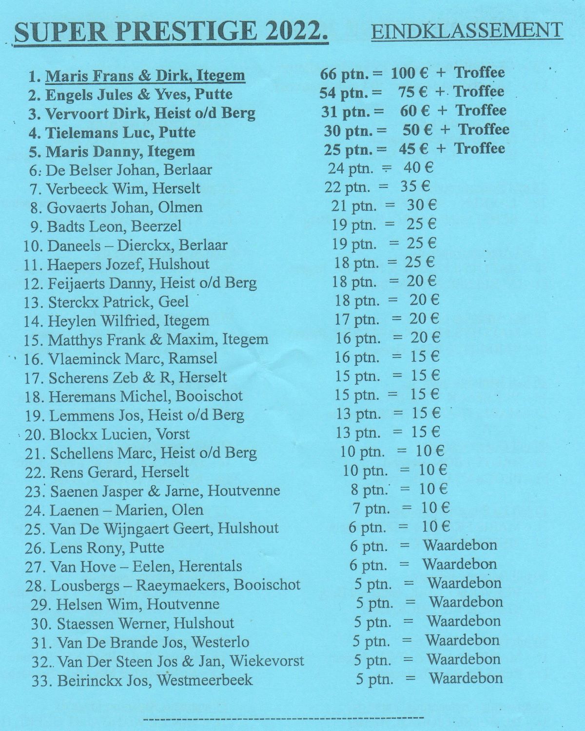 Seizoensoverzicht 2022: Frans & Dirk Maris (Itegem) /13Verm