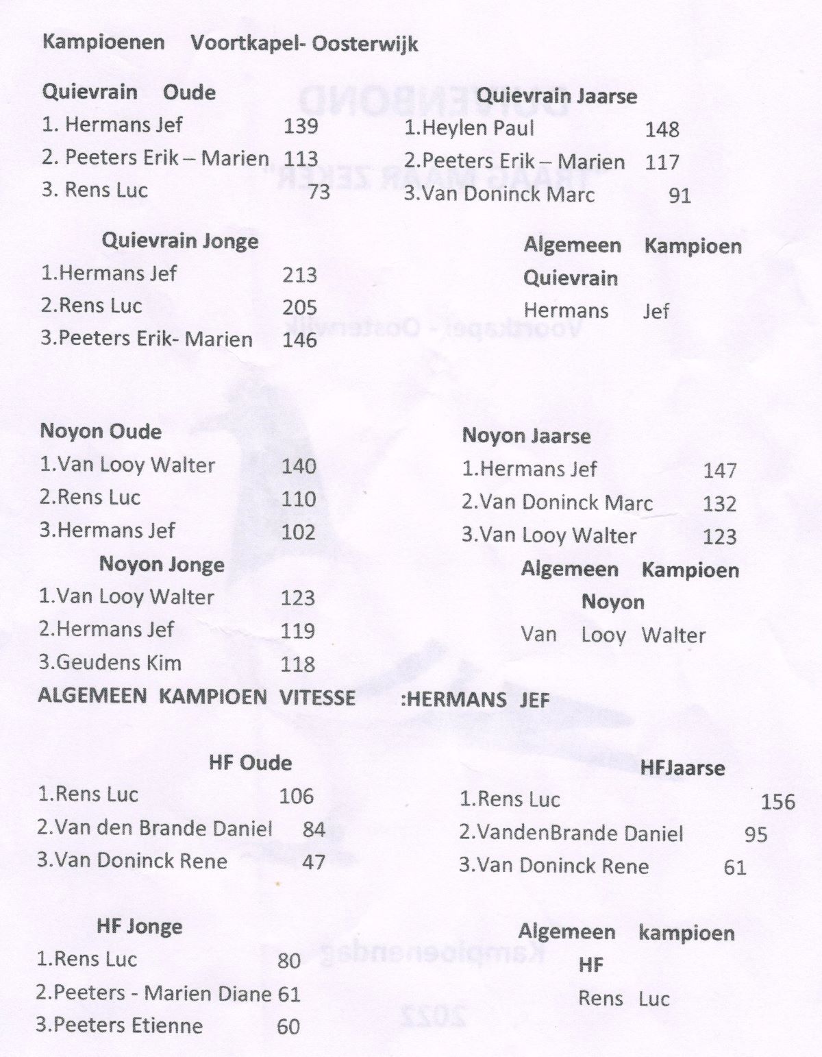 Klik hieronder voor Overzicht Kampioenschappen 2022 Traag maar Zeker Voortkapel