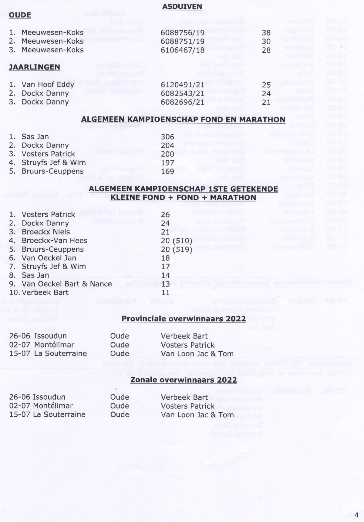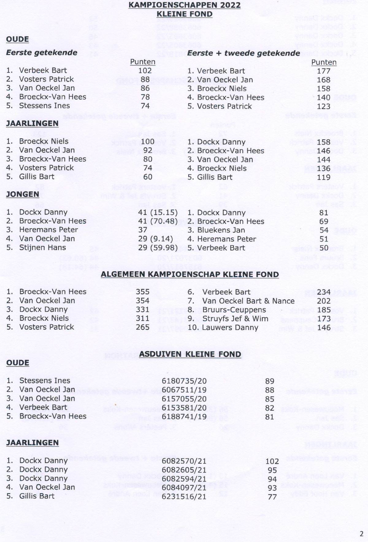 Klik hieronder voor Overzicht Kampioenschappen 2022 Turnhoutse Fondvrienden