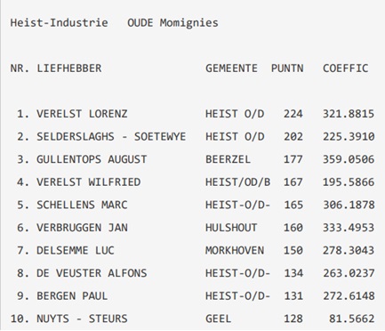 Kampioenschappen 2025 HEIST-INDUSTRIE