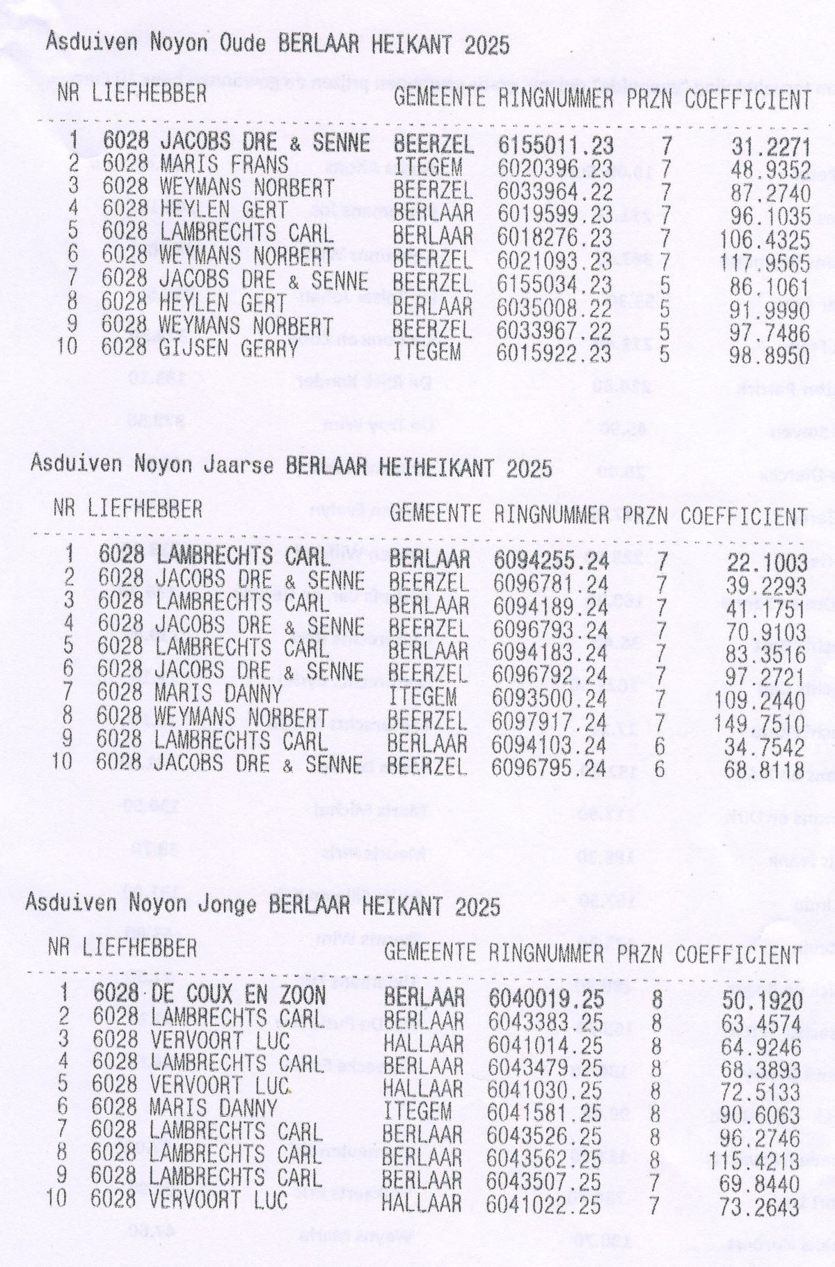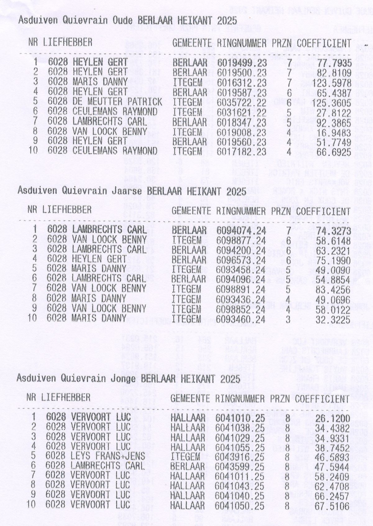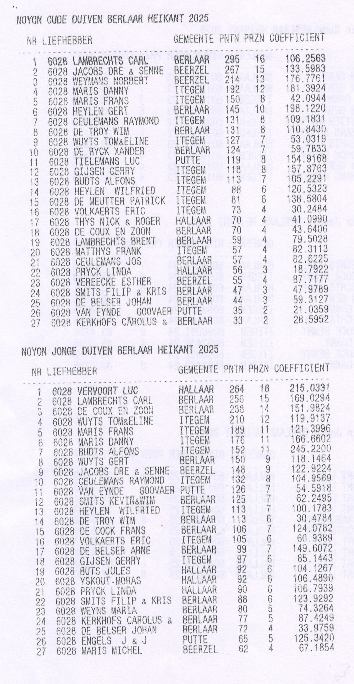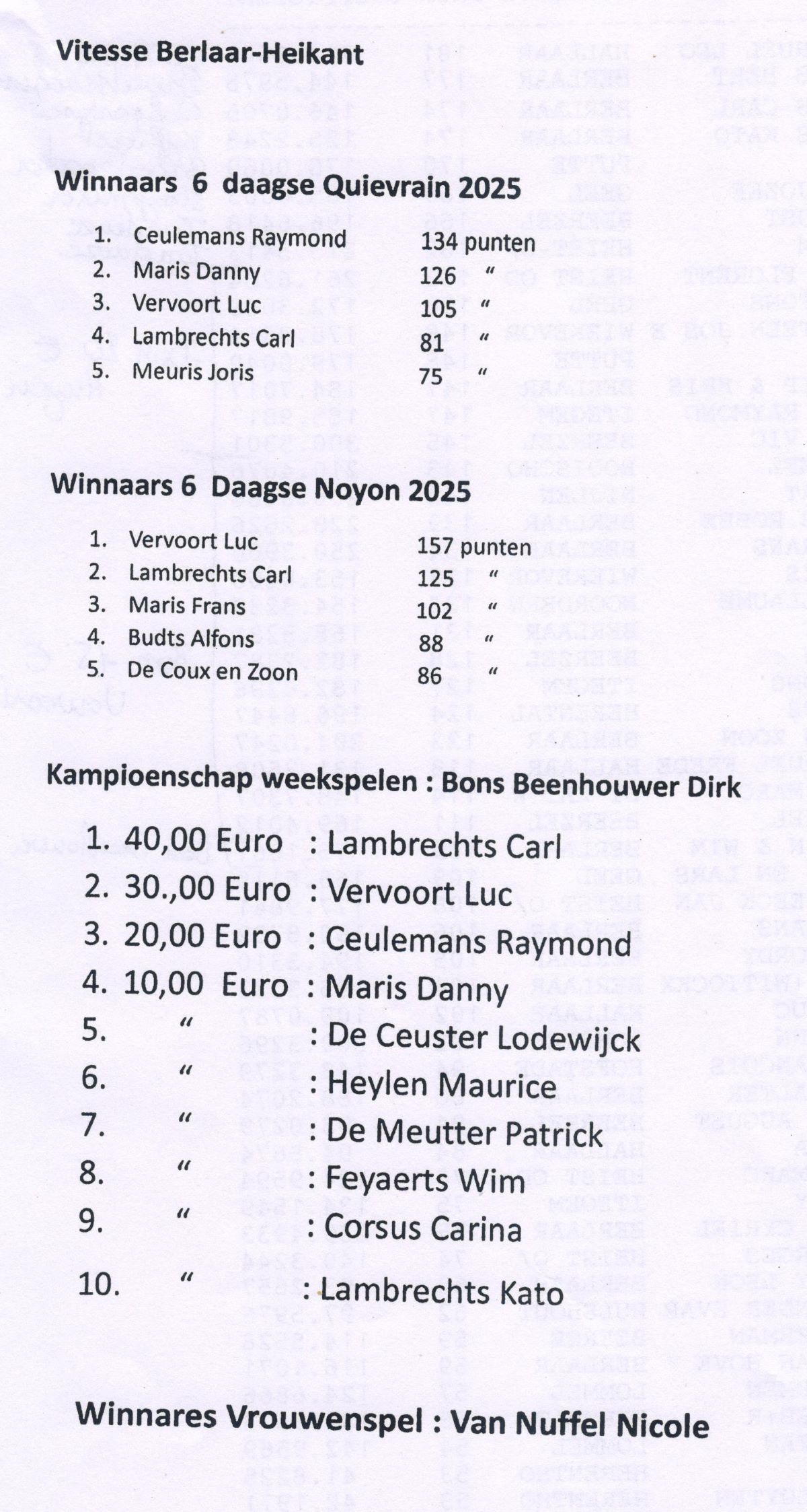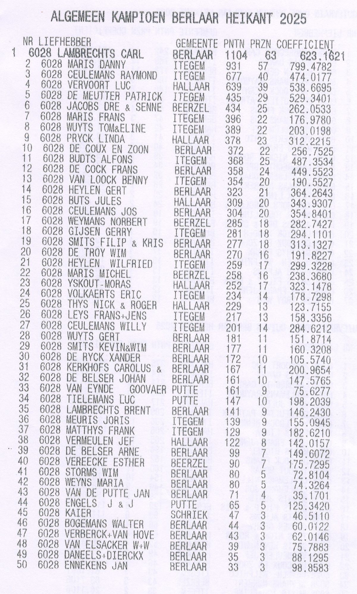 Kampioenschappen 2025 Verbroedering BERLAAR HEIKANT