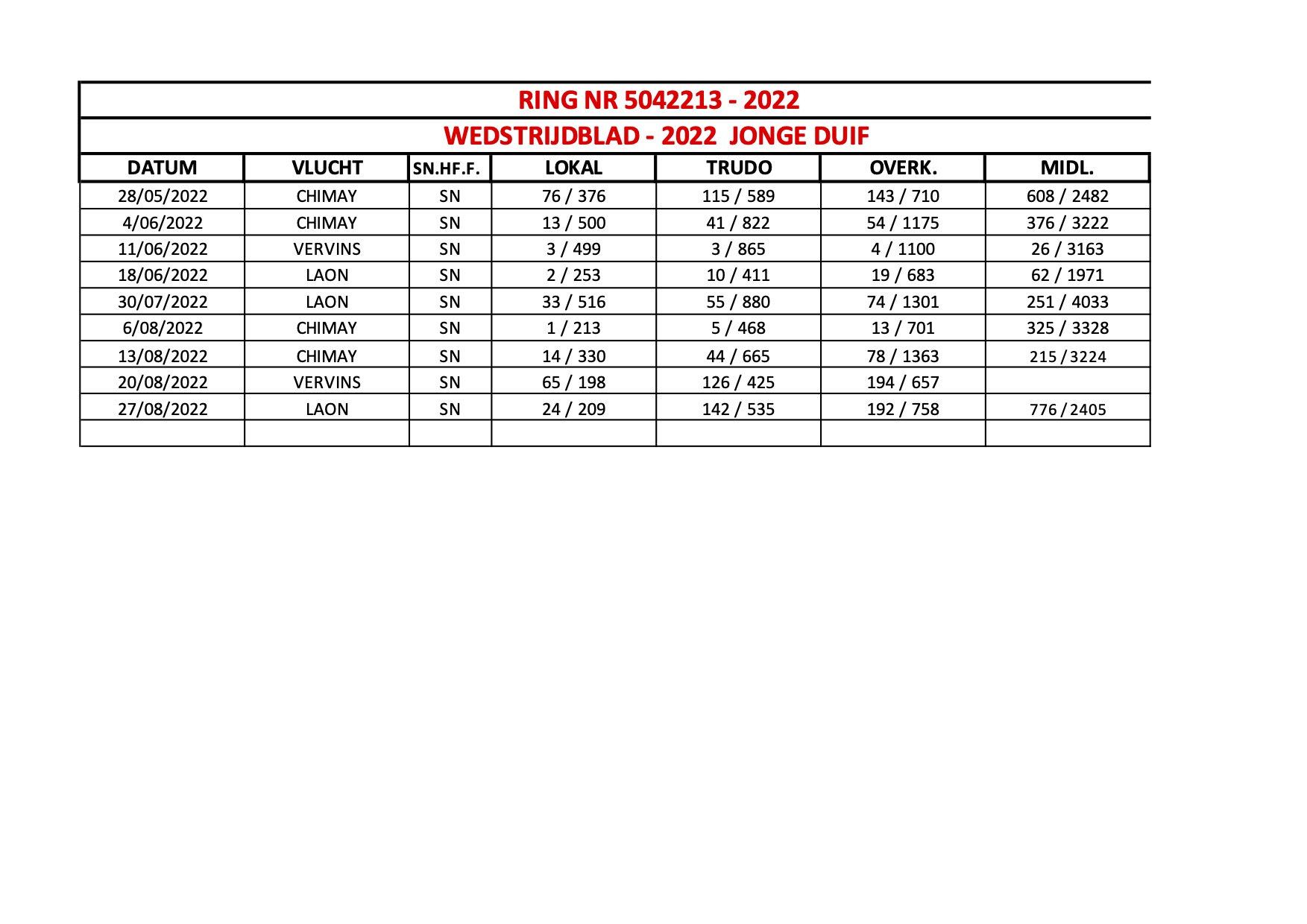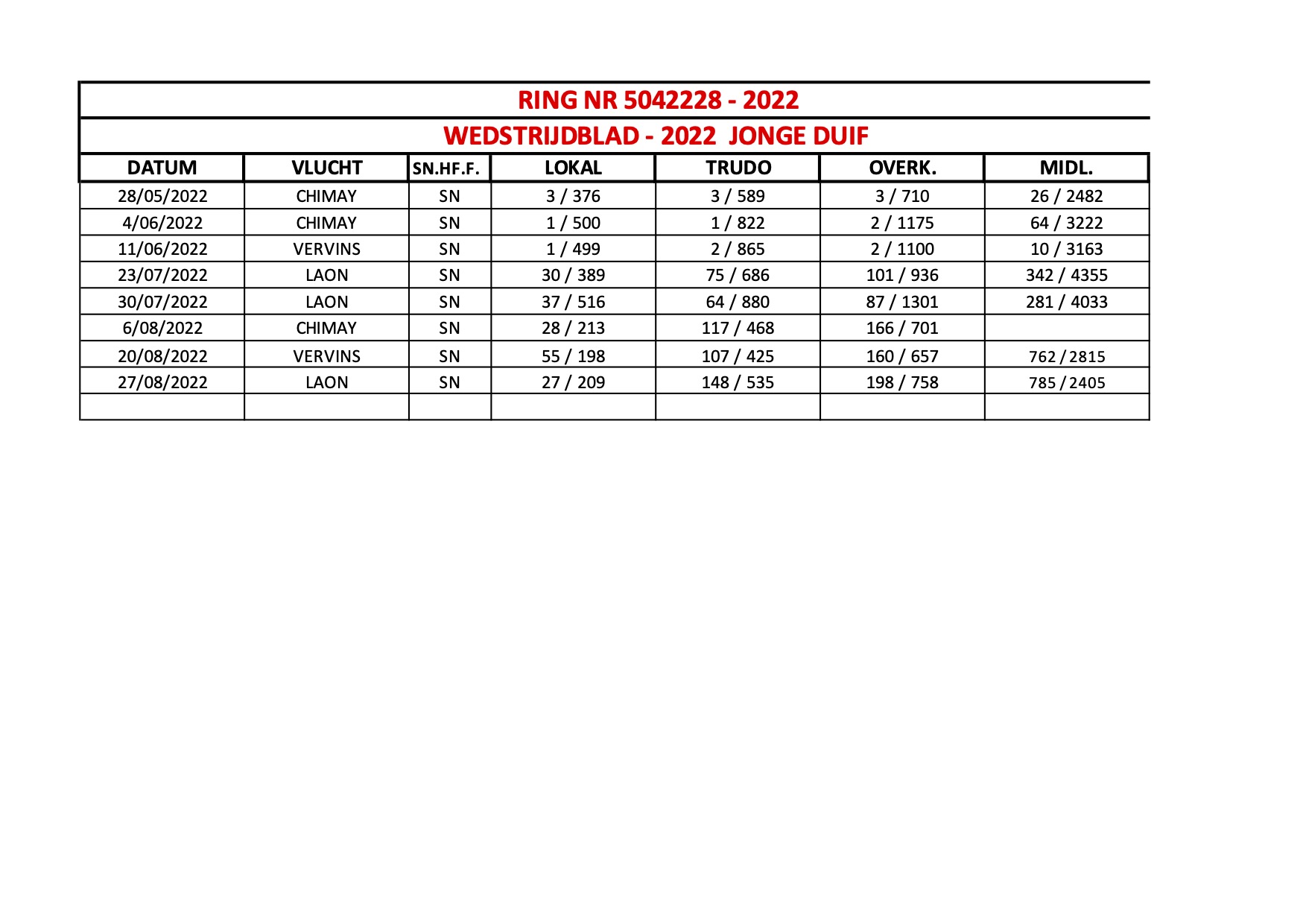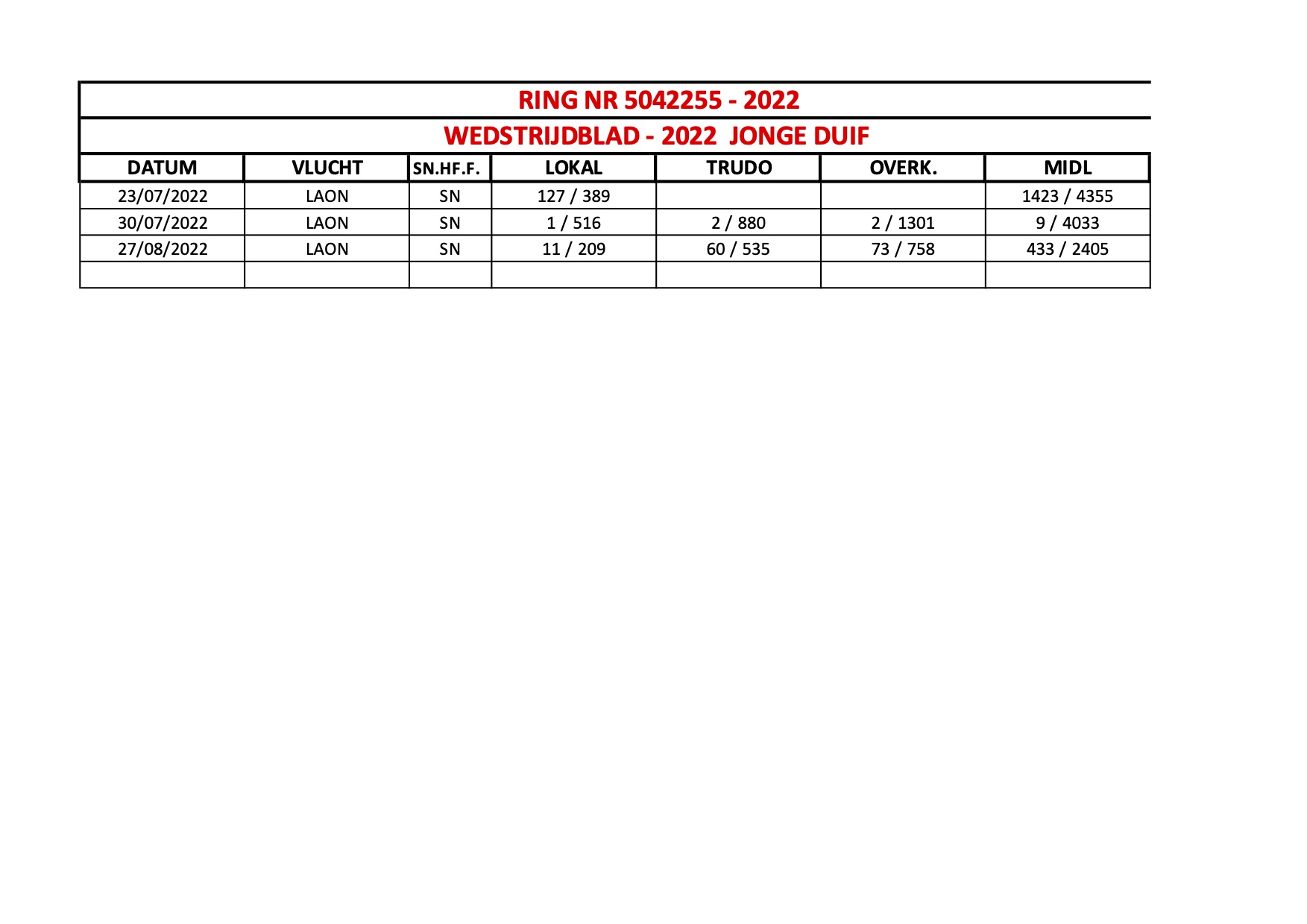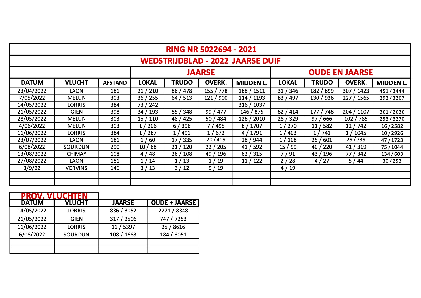 - Laon 1-6-11-15-31-34-51-52-54 9/11 op 189 duiven