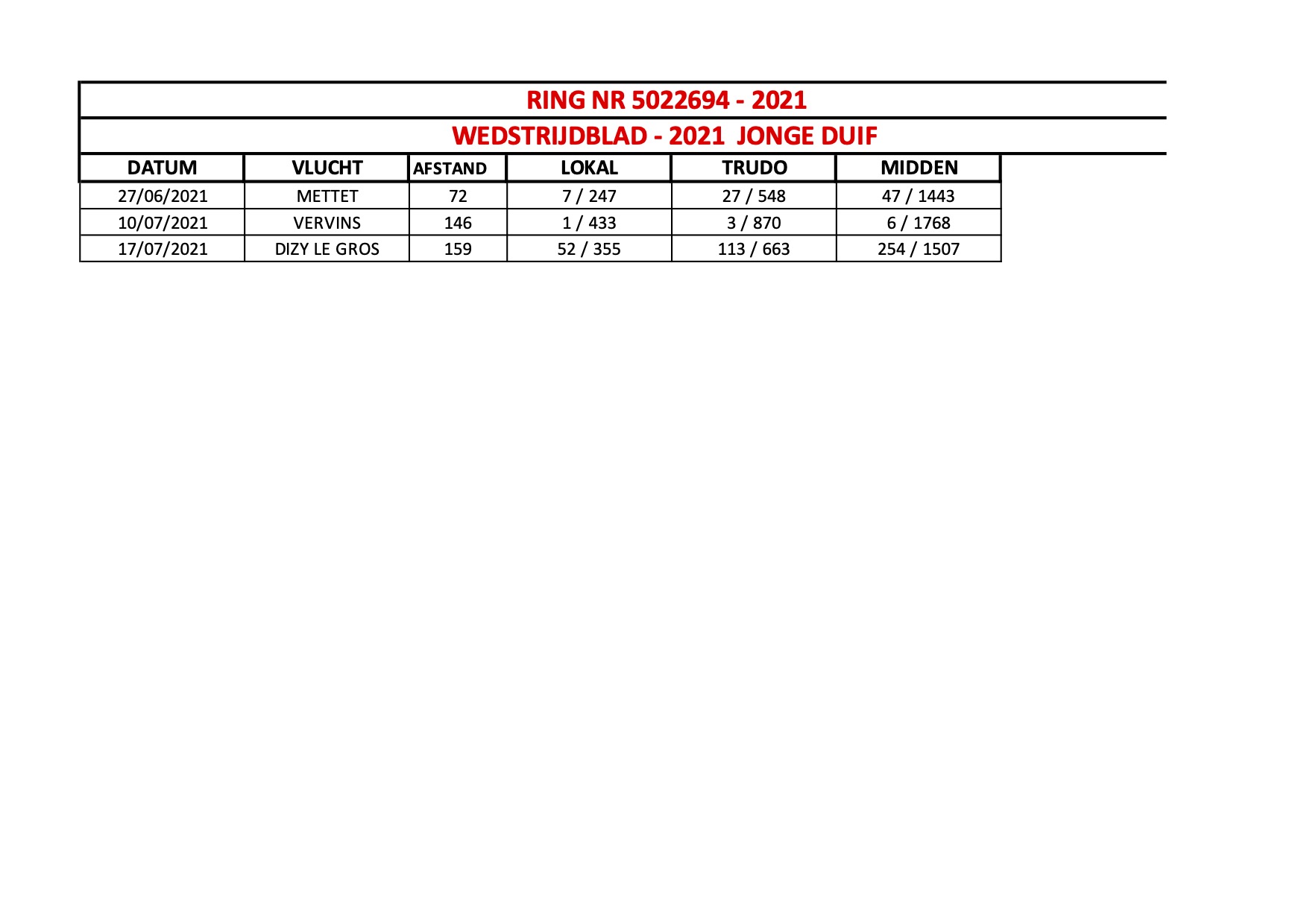 - Dizy 1-2-3-8-10-12-18-21-26 9/11 op 166 duiven