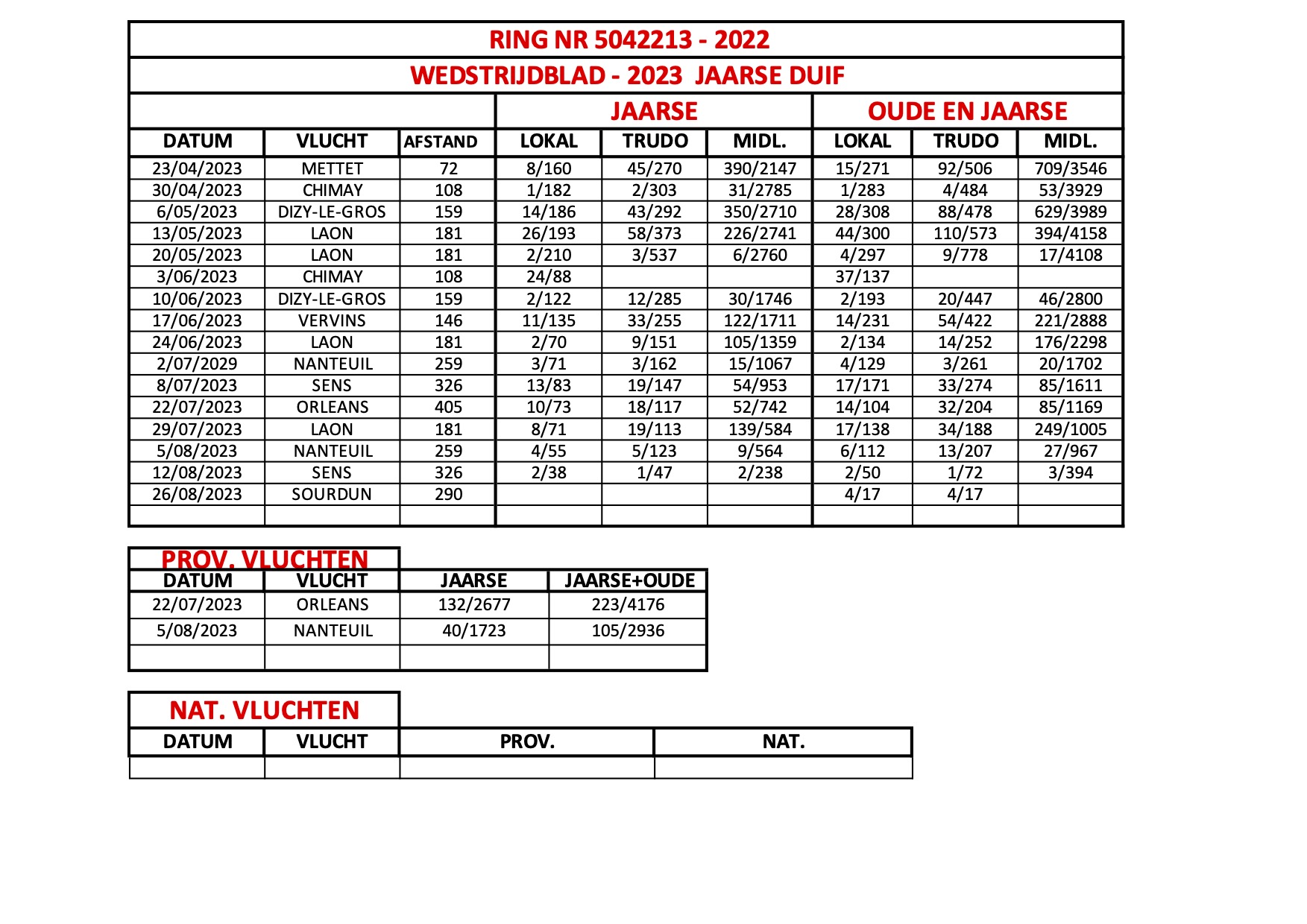 - 1ste nationaal asduif jaarduiven snelheid 2005