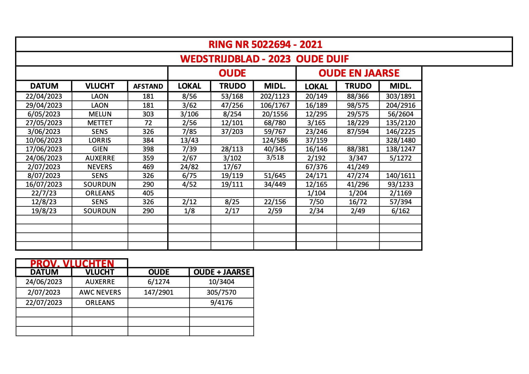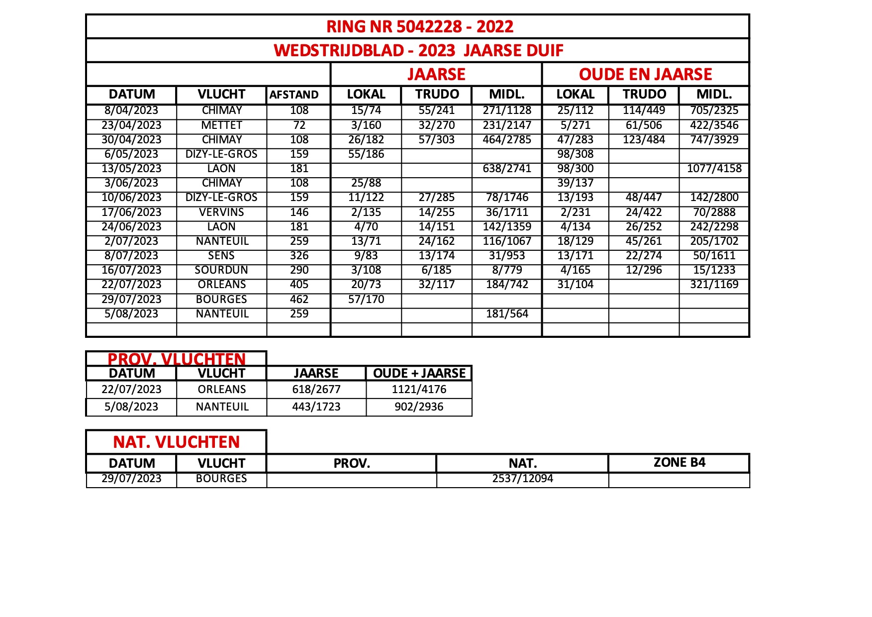 - Bourges 1-12 2/3 op 228 duiven lokaal