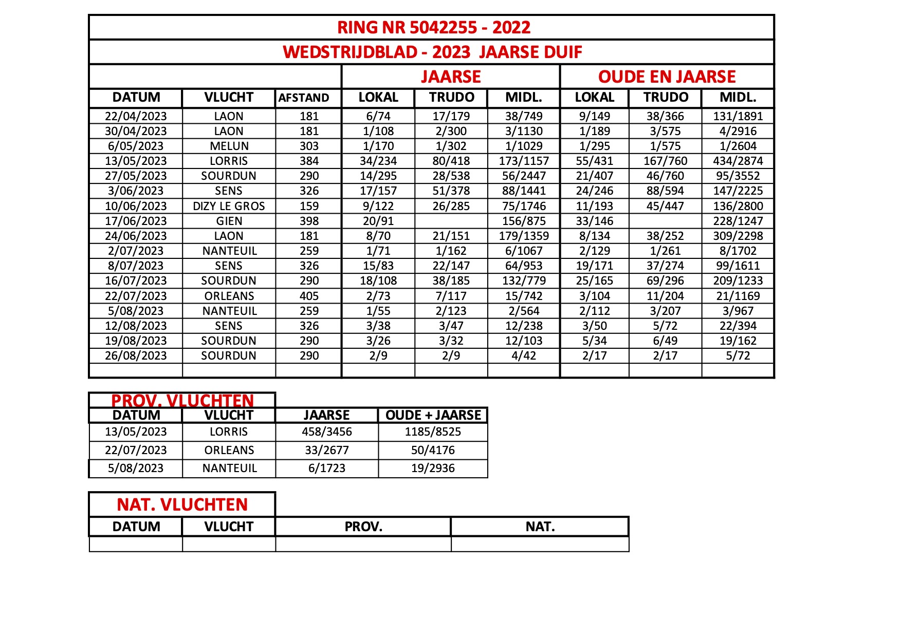 - 5e asduif midden Limburg op 5 prijzen jaarduiven