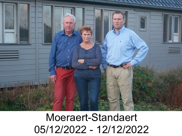 Vooral voeding vinden ze bij Moeraert-Standaert heel belangrijk: niet te zwaar, maar wel genoeg! De laatste dagen wordt wel wat energierijke voeding gegeven en extra pinda's. Thee staat wekelijks 2 dagen op het hok en verder veel appelazijn .