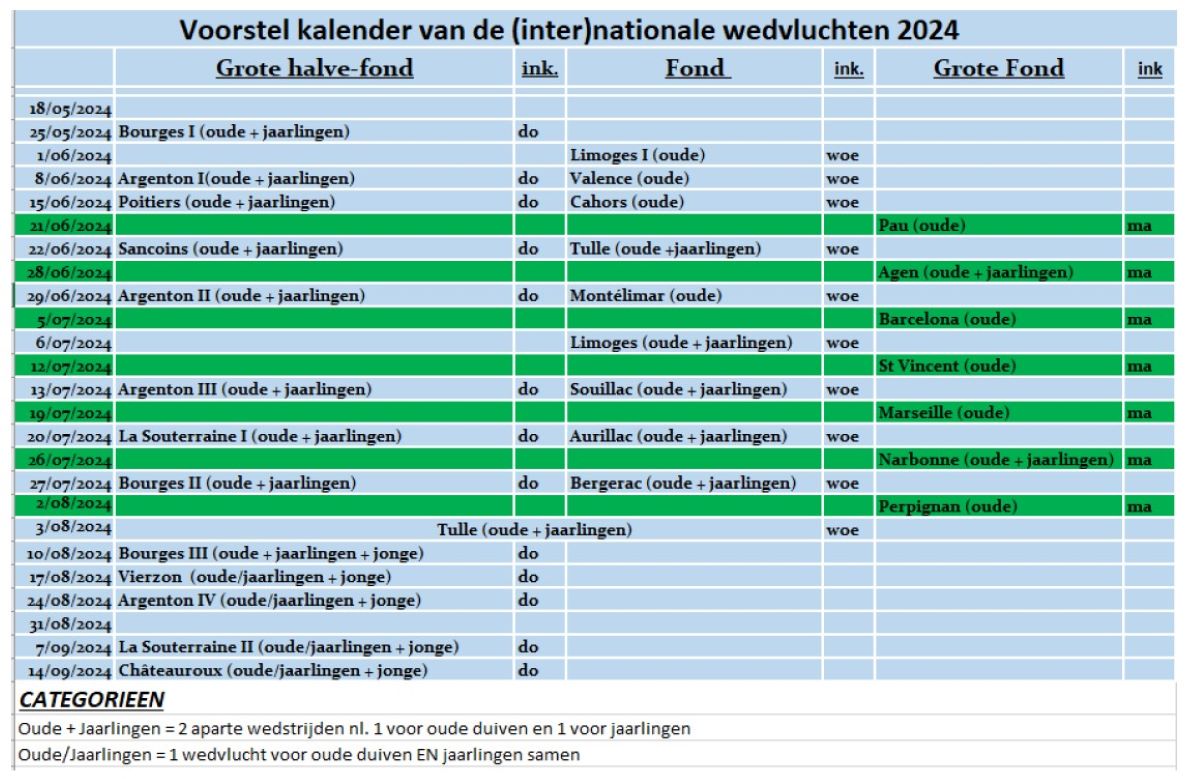 →De PE’s/SPE’s, die op zondag 14 juli 2024 hun wedvluchten in Frankrijk spelen, moeten dienaangaande een beslissing nemen.