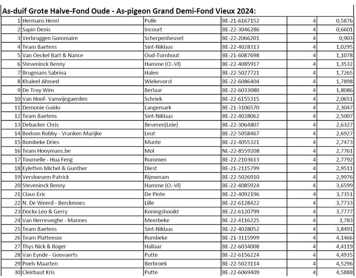 As-duif Grote Halve-Fond Oude - As-pigeon Grand Demi-Fond Vieux 2024:
