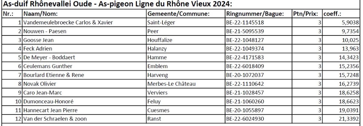 As-duif Rhônevallei Oude - As-pigeon Ligne du Rhône Vieux 2024: