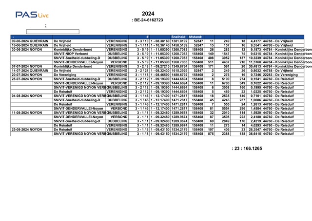 Vliegt onze eerste en voorlopig enige 1e prijs tot nu toe met een 1/276 uit Noyon. Verder nog 3x per 10-tal.