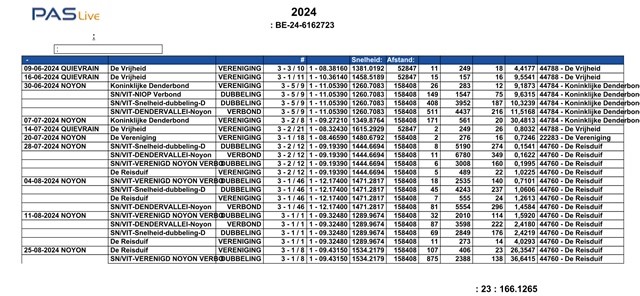 Vliegt onze eerste en voorlopig enige 1e prijs tot nu toe met een 1/276 uit Noyon. Verder nog 3x per 10-tal.