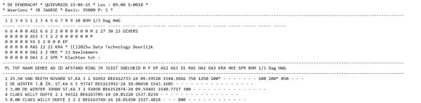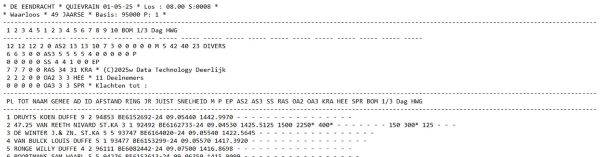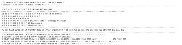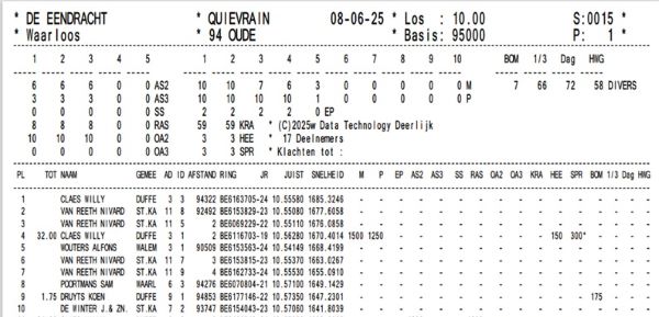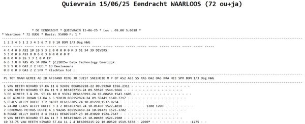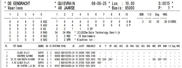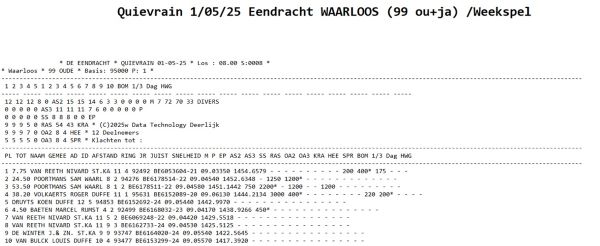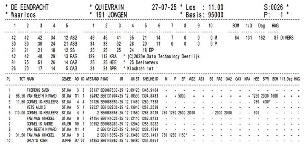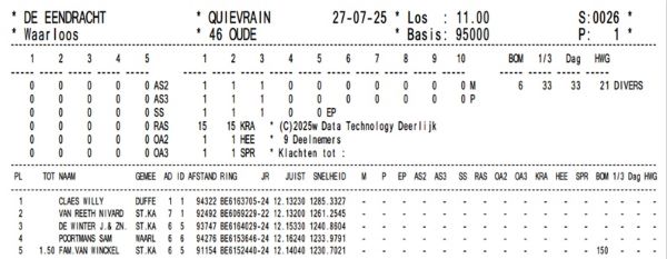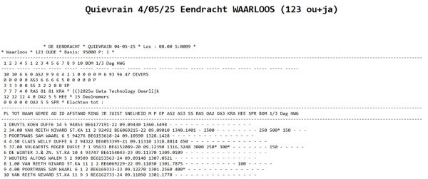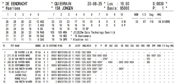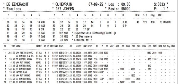 * DE EENDRACHT * QUIEVRAIN 07-09-25 * Los : 09.00 S:0033 * * Waarloos * 157 JONGEN * Basis: 95000 P: 1 *