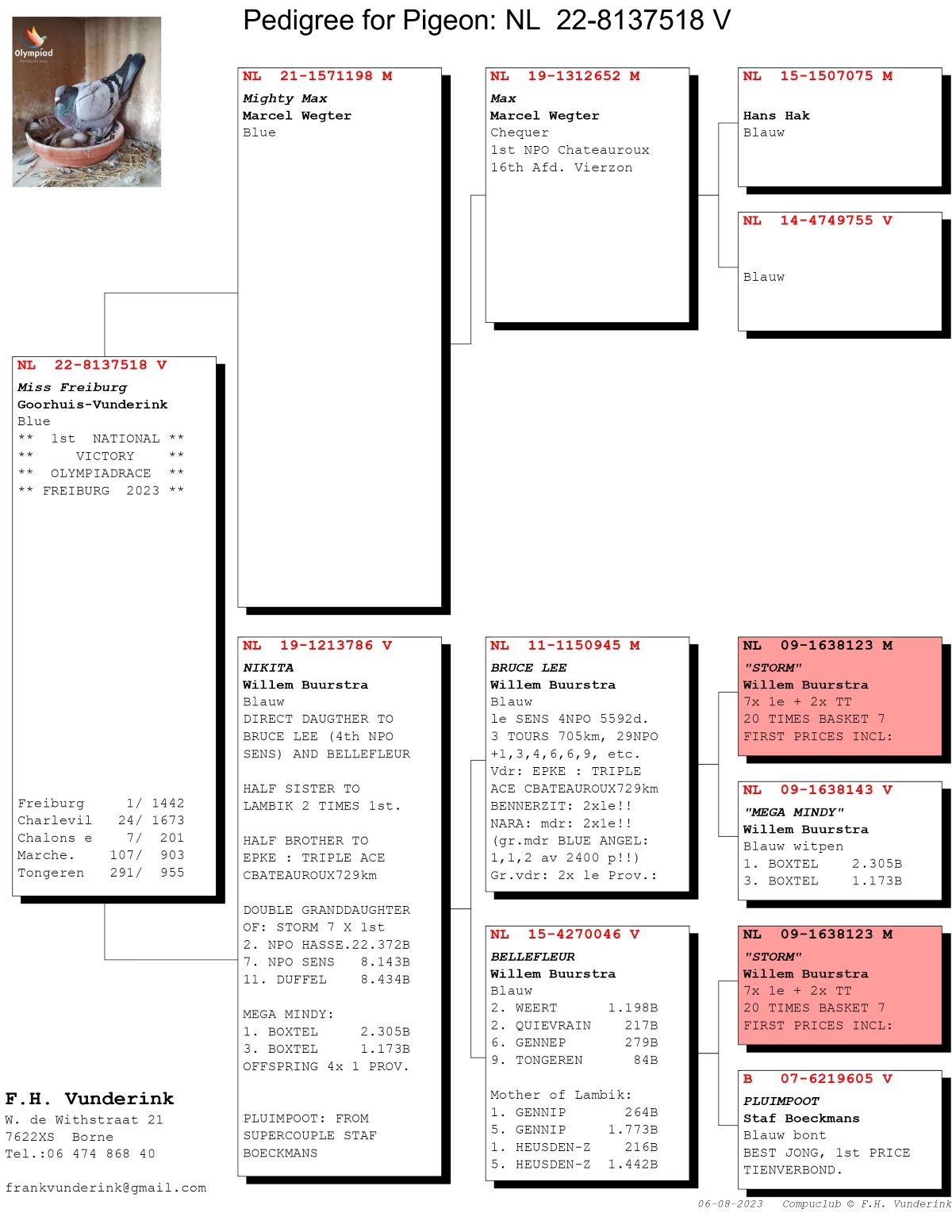 Klik hier voor Afstamming/Pedigree NL22-8137518 'Miss Freiburg'
