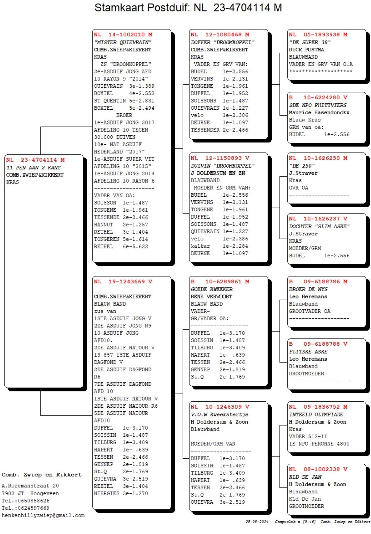 De kras duiver met ringnummer NL23-4704114 '114' wint