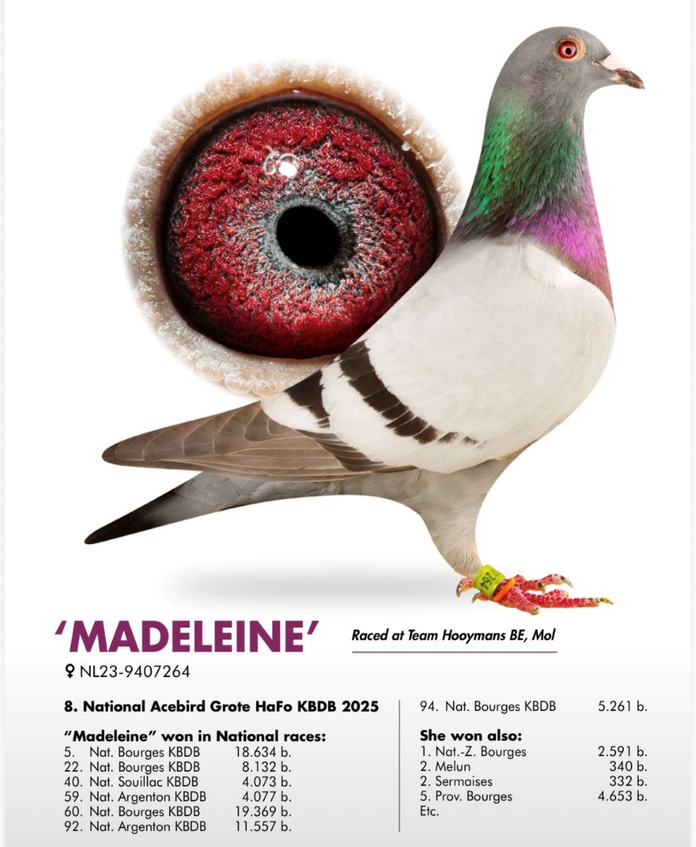 NL23-9407264 'Madeleine' 3e PIPA Beste oude duif in de Belgische halve fond vluchten - 5 prijzen