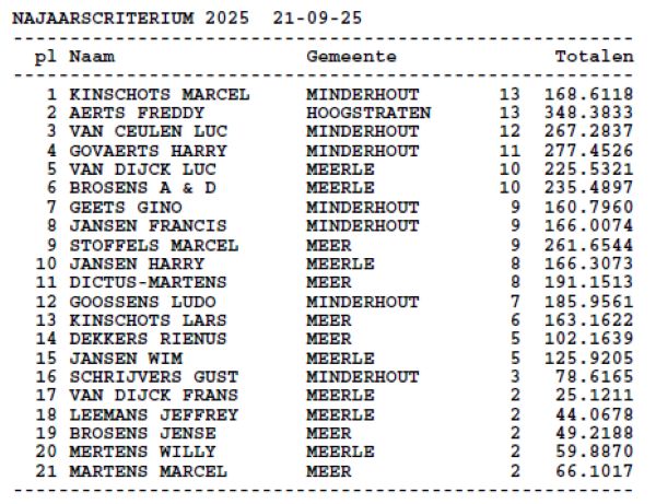 Tussenstand najaarscriterium Oude Quievrain dd. 14-09-2025 de NOORDHOEK