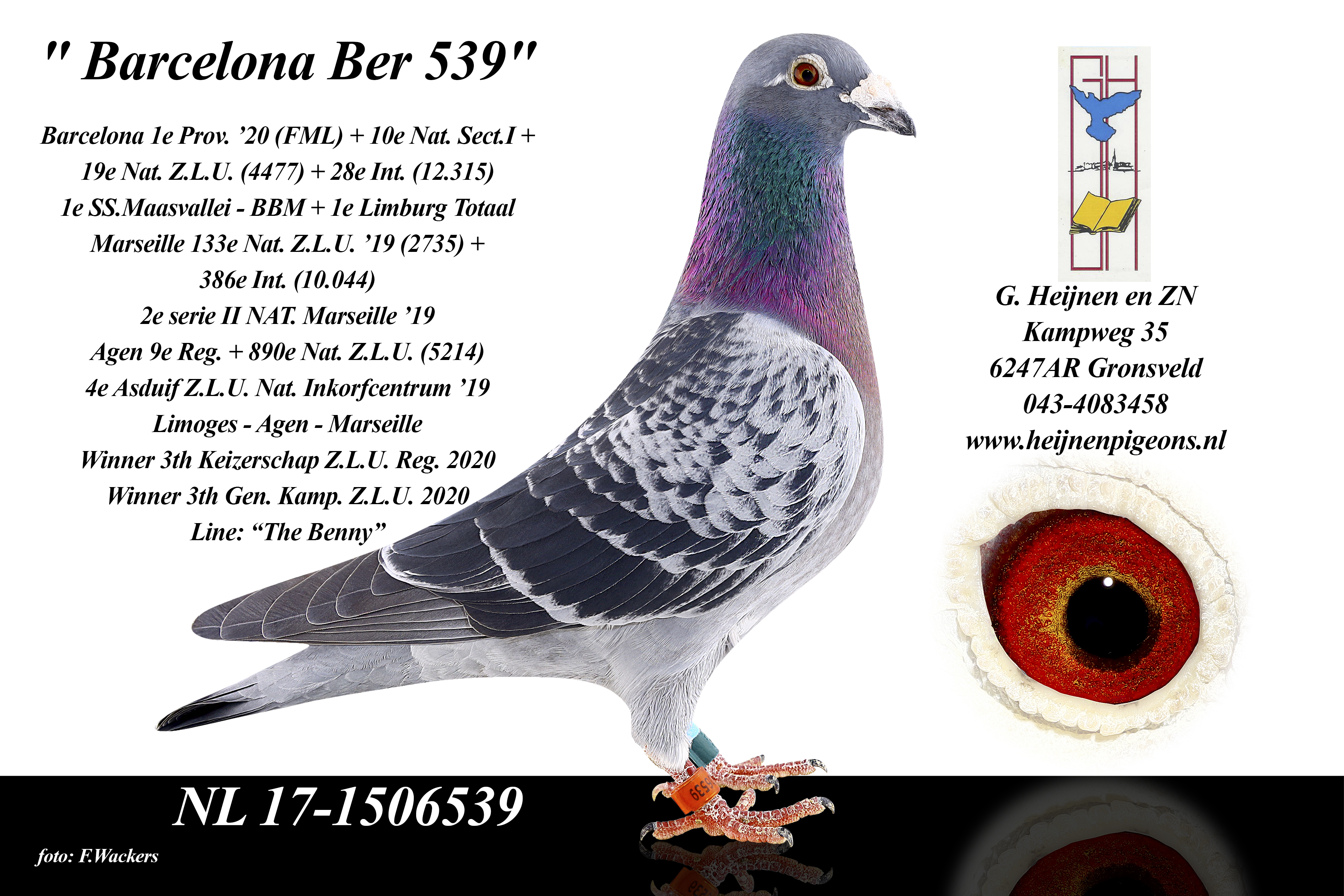 Het Hok Heijnen en Zn is na WO2 opgebouwd met FABRY duiven uit Luik. Grootvader Hubert Heijnen verkreeg 12 eieren bij het Tophok Georges Fabry. Dit was een schot in de roos. In de jaren 50 kwam hier het vermaarde Witveertje uit met 8 nat. Kopprijzen op Dax en St Vincent. In de 70 tiger jaren kwam Gilbert zijn vader ondersteunen. In 1972 werd de 1e Prov. Beaune gevlogen. Na zijn studie in Nijmegen kreeg Gilbert meer tijd met de duiven. In 1986 Nat bekendheid met de RAKET: 1e nat asd Eend Fond. Een europees topjaar was 1993 : 1e nat Bordeaux, 1e nat en 1e int asd, 1e int Fondkamp DE DUIF. Na het overlijden van Hubert stond Gilbert er alleen voor. Dit was 1996 maar het visitekaartje was de 1e prov Argenton (overnachting). In 2000 werd de 1e nat Pau verspeeld door een te late melding maar het werd wel nog de 1e intprov Euregio, In 2002 werd de loodzware Limoges gewonnen: 1e intprov Limoges met NL/b/D. De nadruk kwam ook te liggen op de zware dagfondvluchten. In 2007 werd de 1e nat Narbonne (duivinnen) gewonnen. In 2016 de 1e prov. Valence met de snelste duif in NL/D. Het winnen van Barcelona staat altijd hoog aangeschreven. In 2020 de 1e prov Barcelona(fondclub) met de 19e nat. In 2023 1e Gen. Kamp en 2e Alg Kamp Afdeling Limburg.